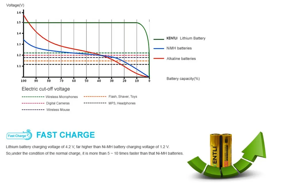 Аккумуляторная литий-ионная батарея KENTLI, 1,5 в, 3000 МВтч