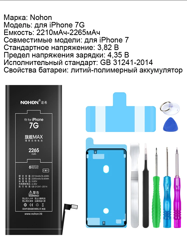 Nohon Аккумулятор для Apple iPhone 6 6s 7 Plus 6P 6sP 7P iPhone6 iPhone7 iPhone6P iPhone7P 2200mAh-3360mAh сменный литий-полимерный батарея + бесплатный инструмент For iPhone 6 6s 7 Plus 6P 7P Мобильный телефон батарея