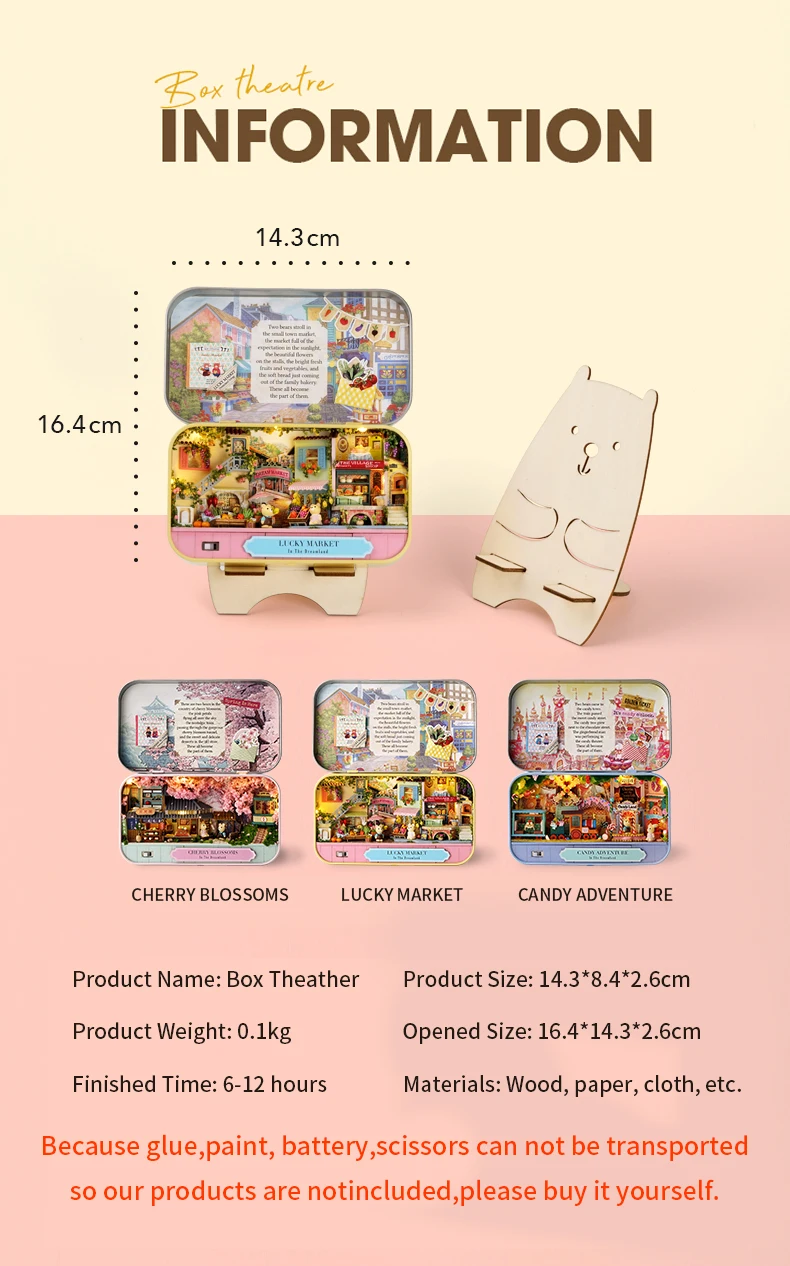 В наборе нет клея, ножниц, ножика и т.п. (как и написано в описании), уточняю потому, что в наборы часто кладут инструмент и клей. Очень милые игрушки, брала для себя, а не для ребёнка, советую. Коробки у наборов разного размера.