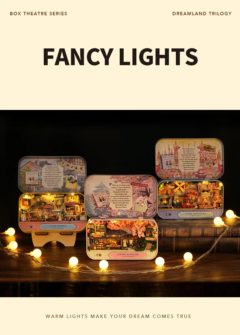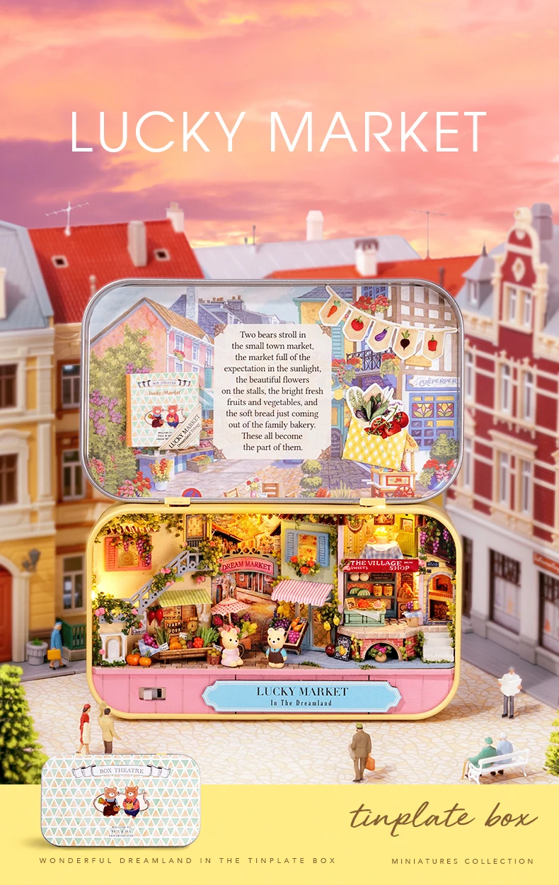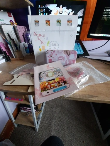 The colors are much brighter than they seem on the picture. Bright pink on one of the houses. The kit is complete and looks good though. I’ve put together almost 20 of these dollhouse boxes and this looks no different.