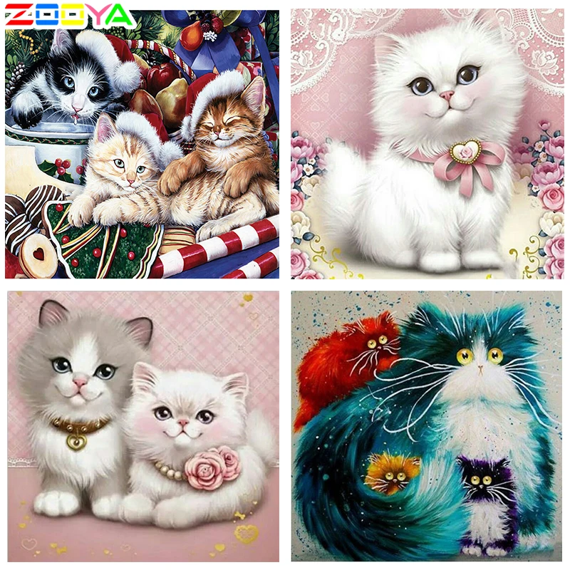 ZOOYA бриллиантовый рисунок Рождество кошка 5D Вышивка крестом Стразы мозаичная картина, выполненная в технике, рождественские украшения для дома, RF788