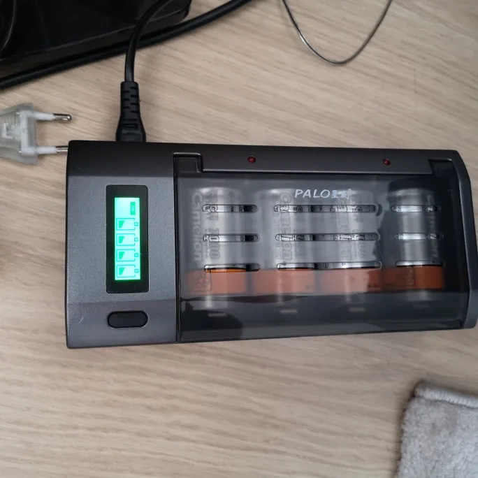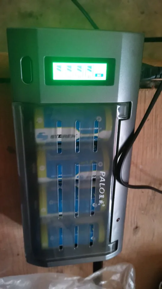 Батарейки простояли ночь, не знаю зарядились или нет, но на дисплее показывает ошибку. три батареи заряжает, на четвёртую сил не хватает