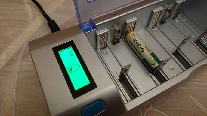 Доставка за две недели. Упаковано хорошо, устройство соответствует описанию. Вставил аккумуляторы - заряжает.