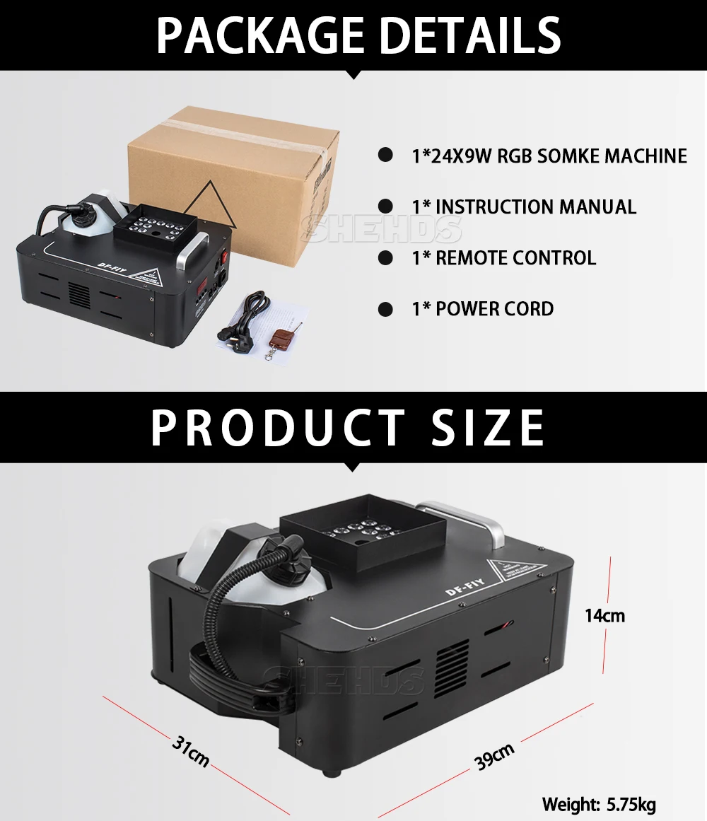 Светодиодная противотуманная машина, 1500 Вт, 24x9 Вт, RGB-подсветодиодный ка, генератор дыма, оборудование для DJ, KTV, SHEHDS, сценическое освещение