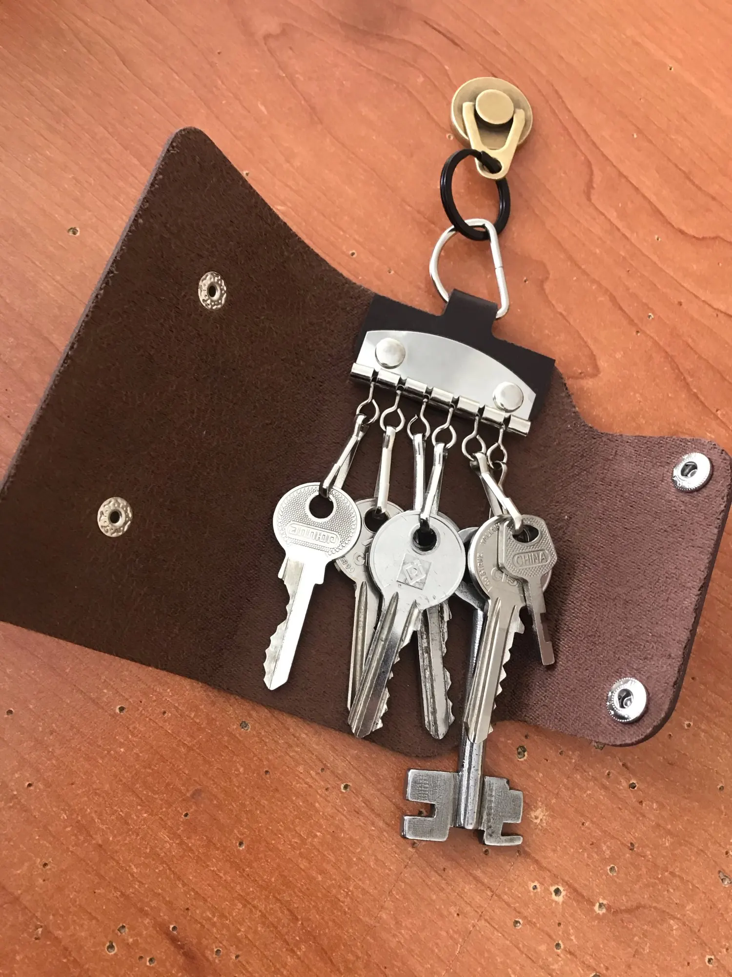 ключницы хорошие, доставка быстрая (меньше месяца). По размеру ключницы небольшие, длинный ключ будет сильно торчать, поэтому я его закрепила на верхнее большое кольцо, так хотя чуть-чуть торчит он внизу. В общем, качественные ключницы, без недостатков, но не для длинных ключей.