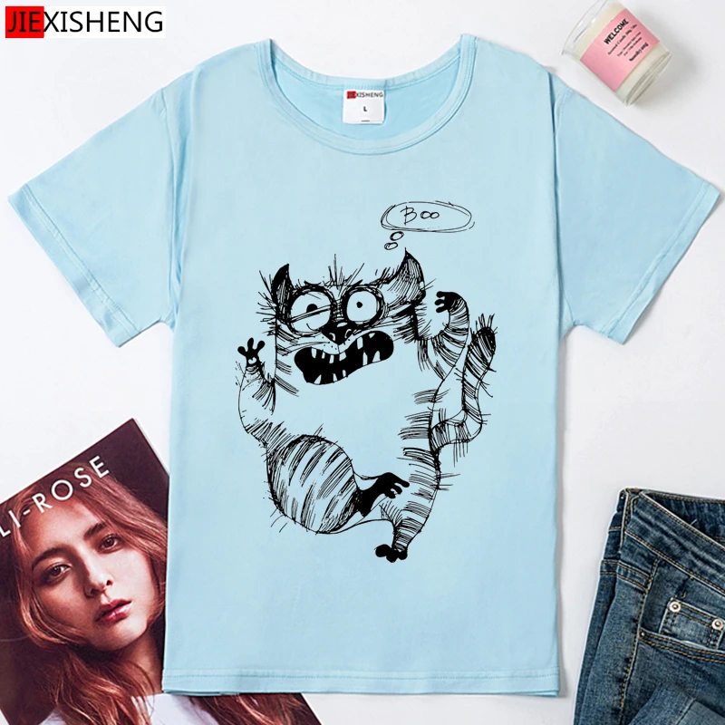 Забавная женская футболка с принтом кота, летняя женская футболка с...