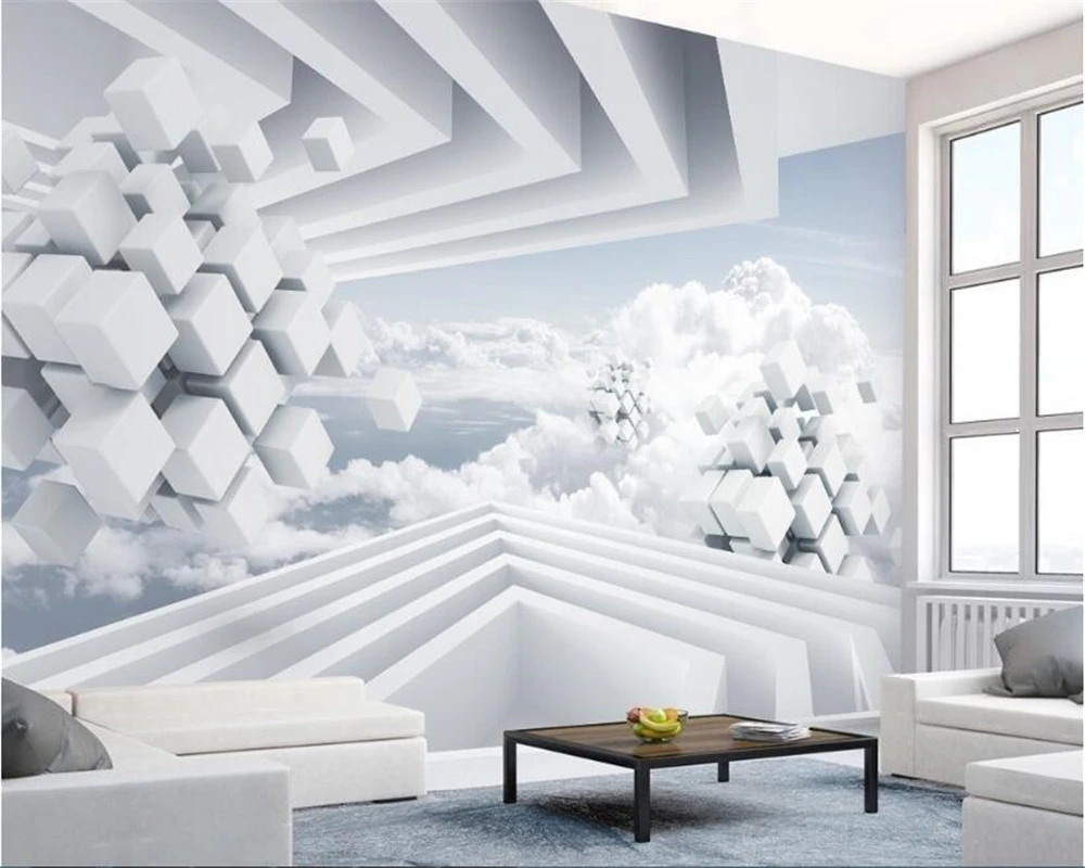 3d обои beibehang, классические 3D обои с объемным абстрактным космосом, голубым небом, белыми облаками, ТВ фоном
