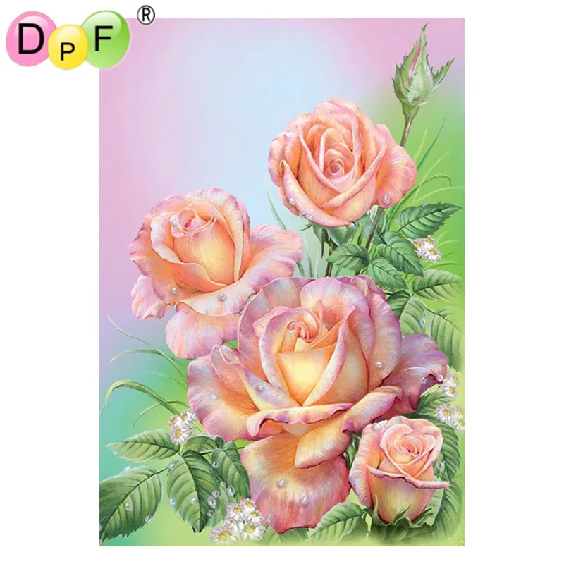 Набор для рукоделия DPF, 5d алмазная вышивка, квадратная мозаика, розовые розы, стразы, украшение для дома