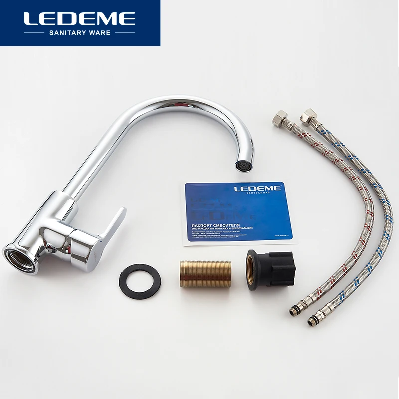 LEDEME Смеситель для кухни высокий с гайкой латунь Цвет: хром L4003