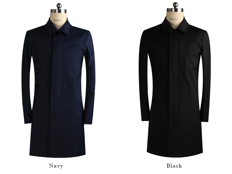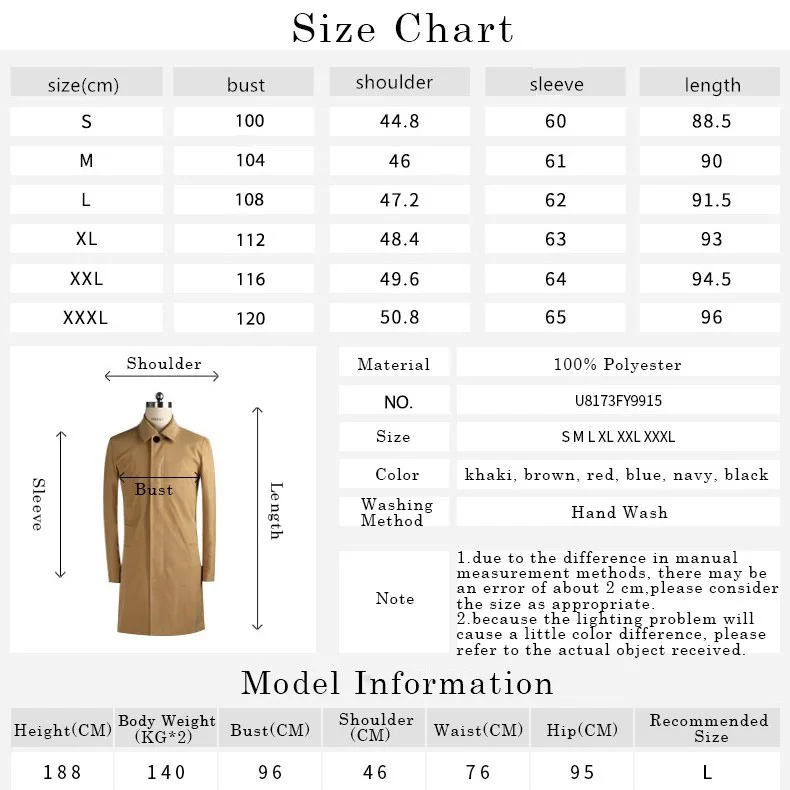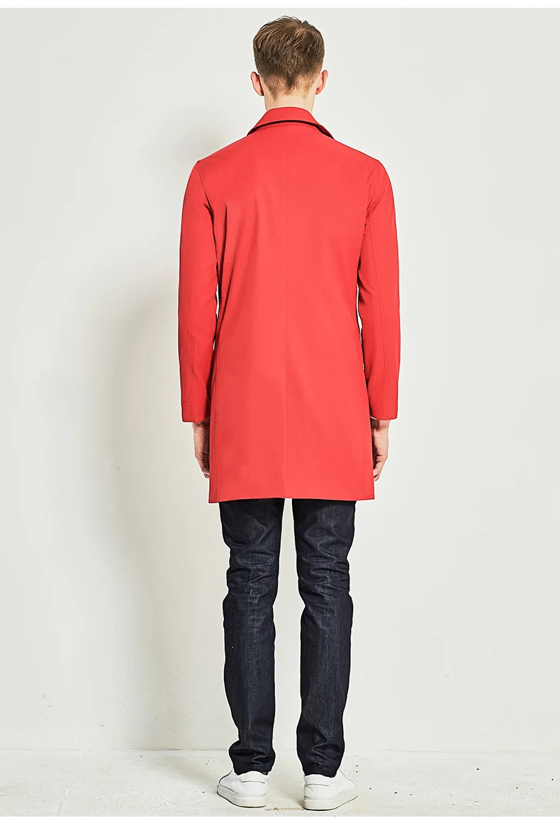 Тренч мужской однобортный средней длины, модное облегающее однобортное пальто, цвет хаки