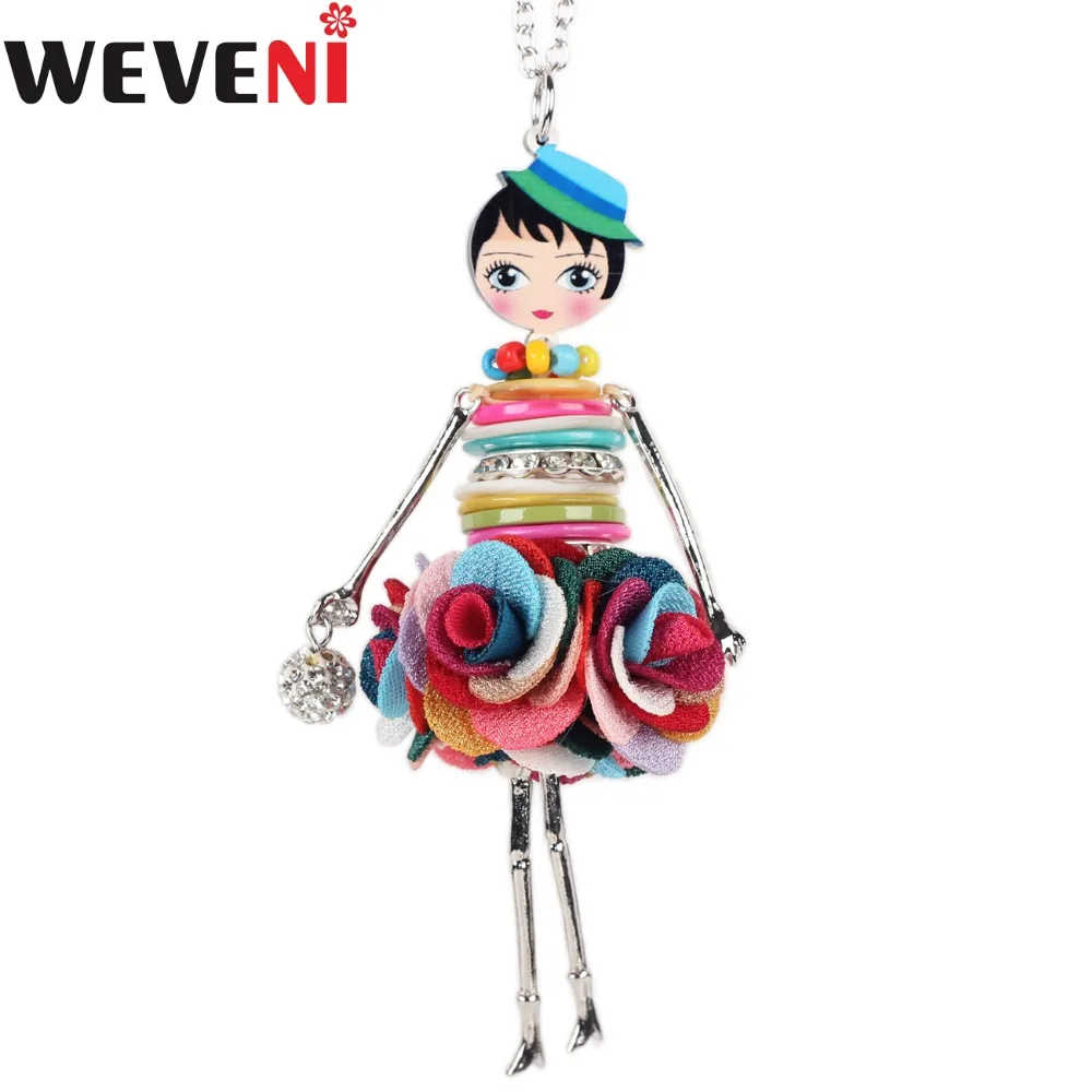 Массивное ожерелье WEVENI для кукол из сплава с кристаллами, длинные подвески, цепочка для воротника, новые модные аксессуары для девушек, ювелирные изделия для женщин