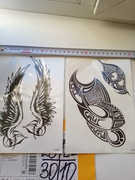 тату соответсвуют описанию, начинает слазить на второй день, но это в порядке вещей... спасибо продавцу!
