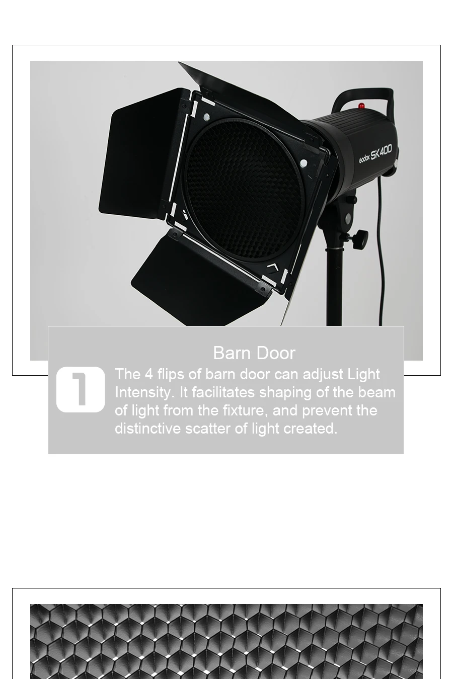 Godox BD-04 Barn Door С Honeycomb Grid и 4 цветными гелевыми фильтрами (красный желтый синий зеленый)