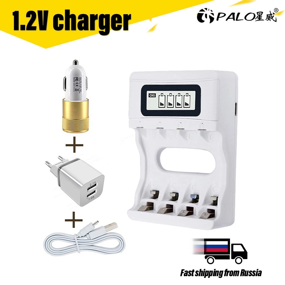 Зарядное устройство PALO с 4 слотами для аккумуляторов 1,2 в AAAAA, зарядное устройство Usb с ЖК-дисплеем, устройство для быстрой зарядки Ni-MHNi-Cd