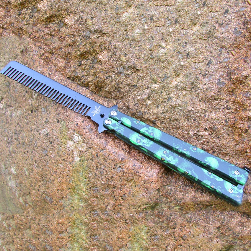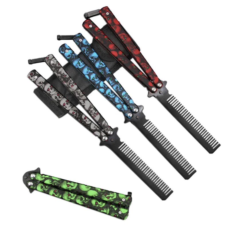 Парикмахерские расчески с бабочками из нержавеющей стали, винтажный складной нож-скелет для тренировок, аксессуары для волос UN777