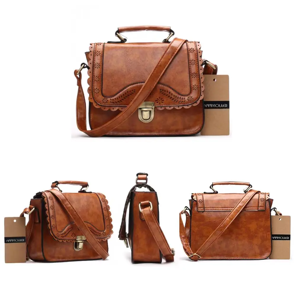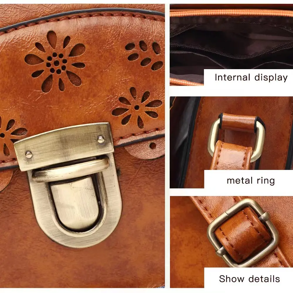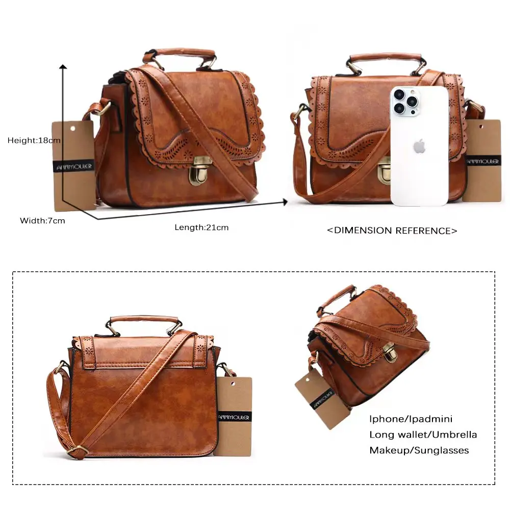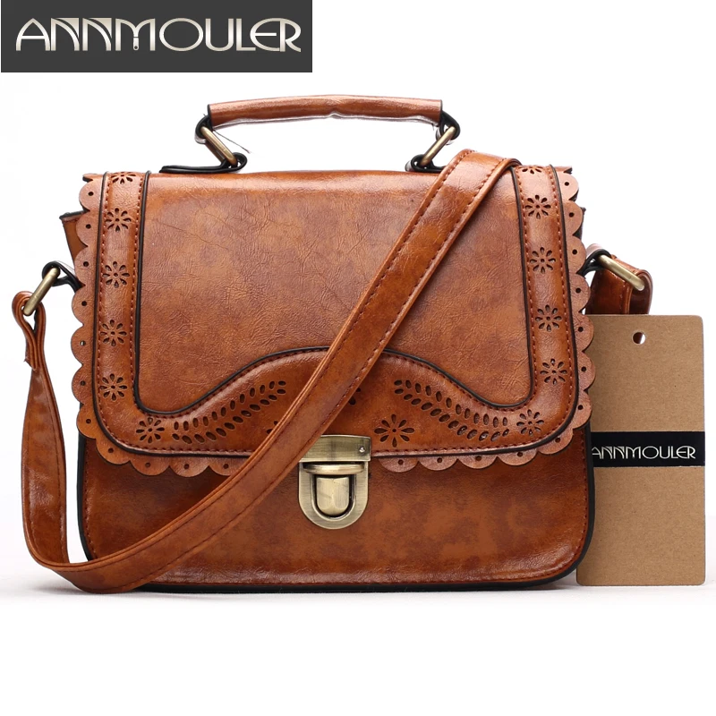Винтажная дамская сумочка Annmouler из искусственной кожи, маленький ажурный кружевной мессенджер на плечо, коричневый ретро ранец для девушек