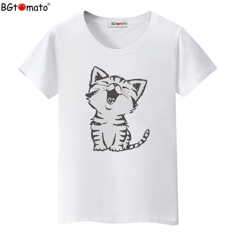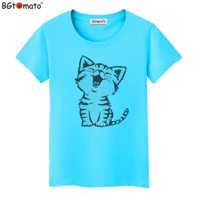 Футболка BGtomato в четырех цветах с изображением милого котенка, новые брендовые футболки с изображением милого кота, дешевая женская футболка хорошего качества в повседневном стиле
