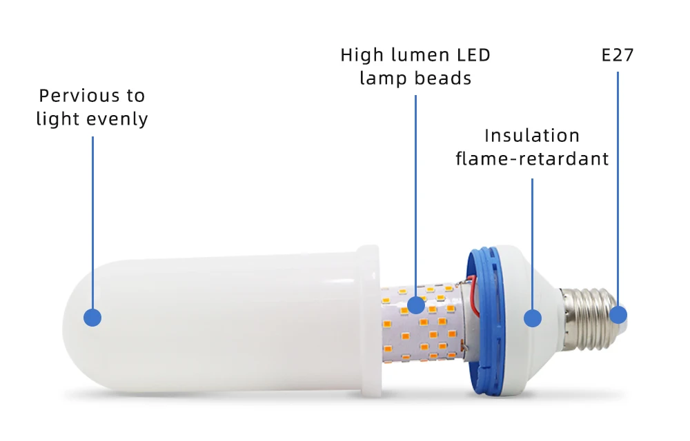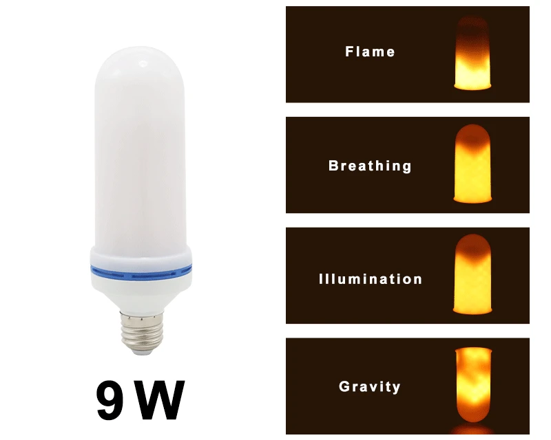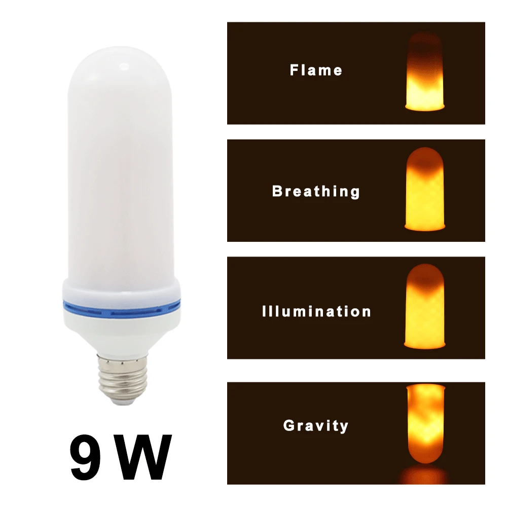 Лампа пламенная светодиодная, 85-265 в, E27, 3 Вт, 9 Вт