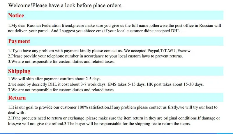 Примечание: Вы можете разместить заказ разных цветов, но отметьте свой заказ, спасибо!