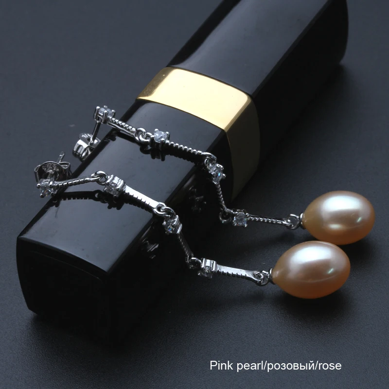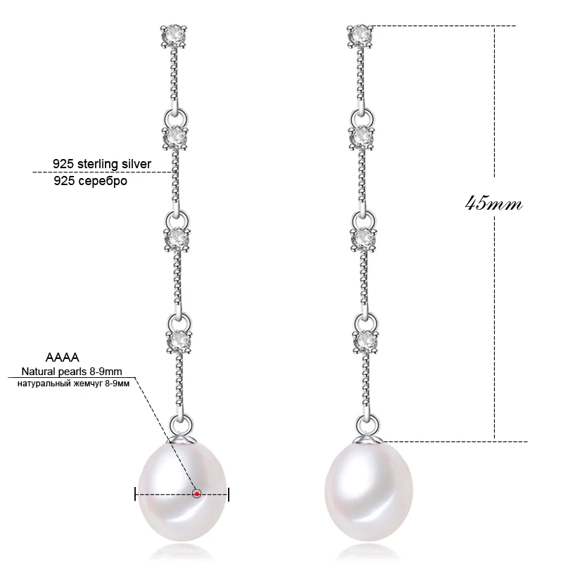 Длинные серьги с жемчугом-капли для женщин, свадебные серьги с пресноводным жемчугом, ювелирные изделия из серебра 925 пробы, Подарок на годовщину, 8-9 мм, подарочная коробка