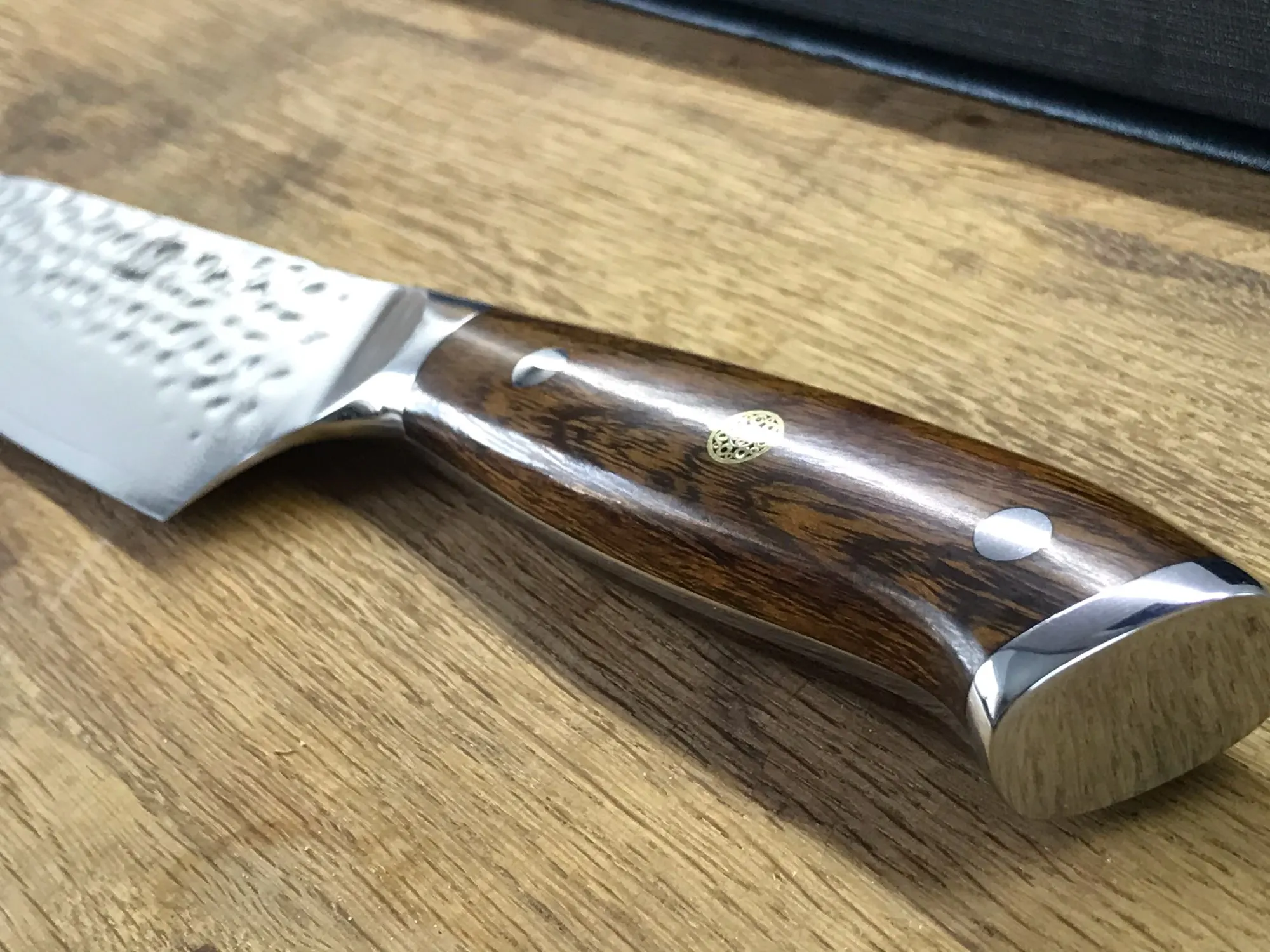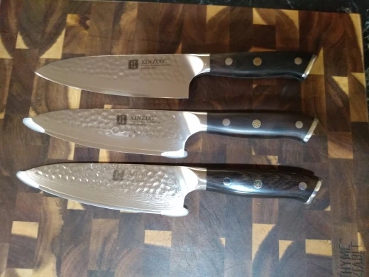 Я купил один из 10 месяцев назад и пользовался им ежедневно. Никогда не заостренный, только отточенный, все еще очень острый. Отличное сохранение кромок. Я купил еще два в качестве подарка. Ручки даже лучше, чем мои первые. Заклепки очень гладкие, где они гордились моим первым. У меня есть различные немецкие и японские ножи, такие как Wusthof, Global, Shun и я предпочитаю этот. Я не могу рекомендовать этот нож достаточно. Отличный размер для домашнего повара.