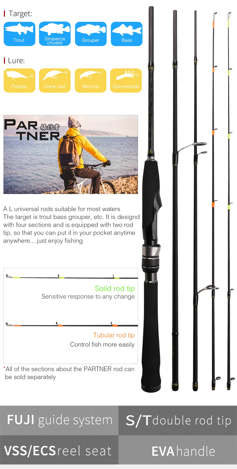 Спиннинговое удилище Tsurinoya PARTNER, 4 сек, 1,88 МL3-12 г, 1,91 мUL2-7 г