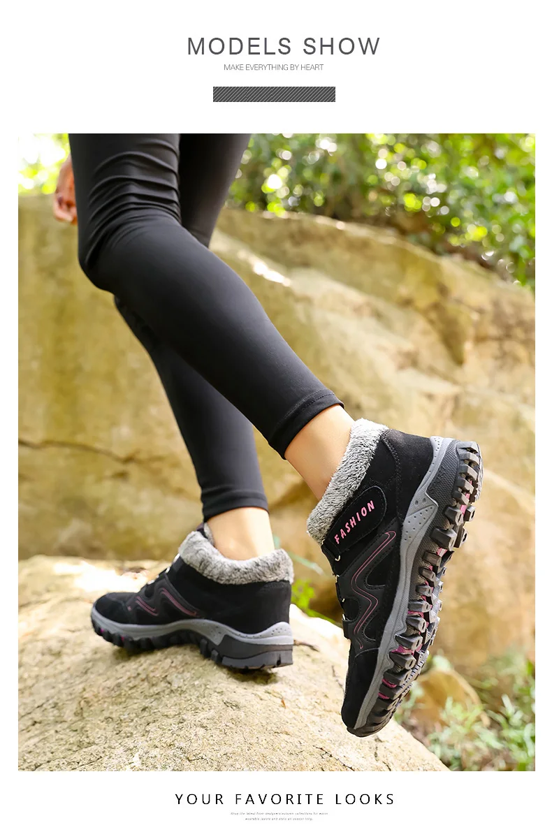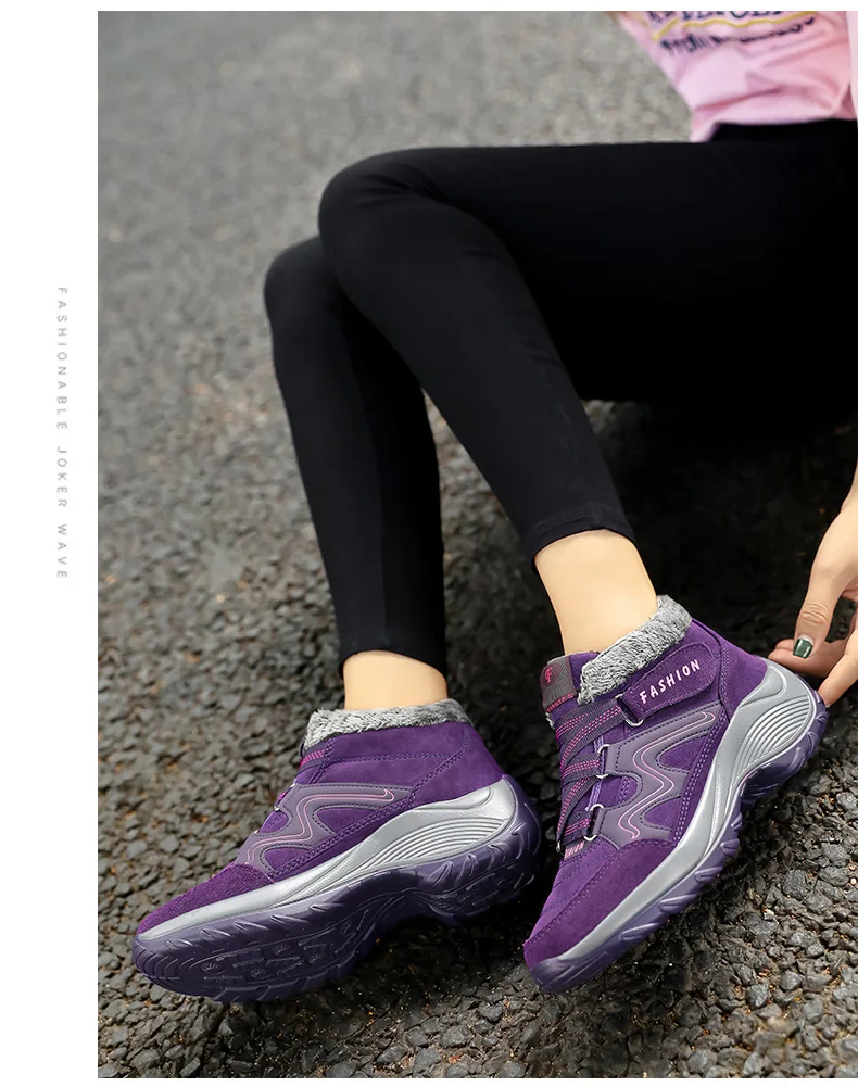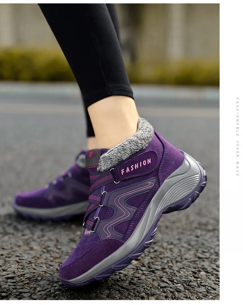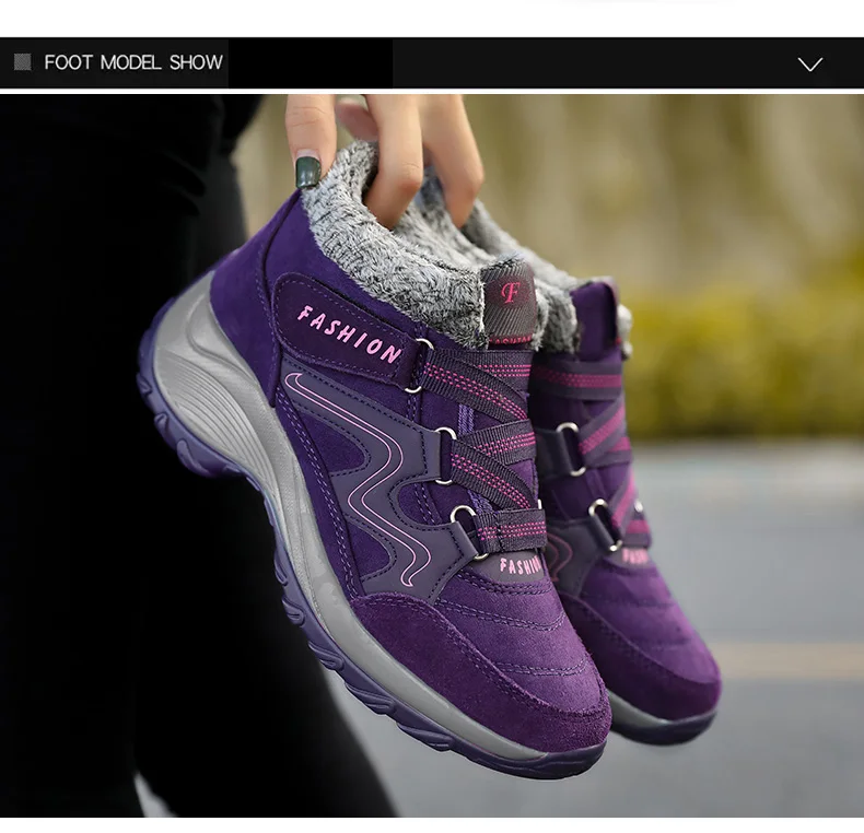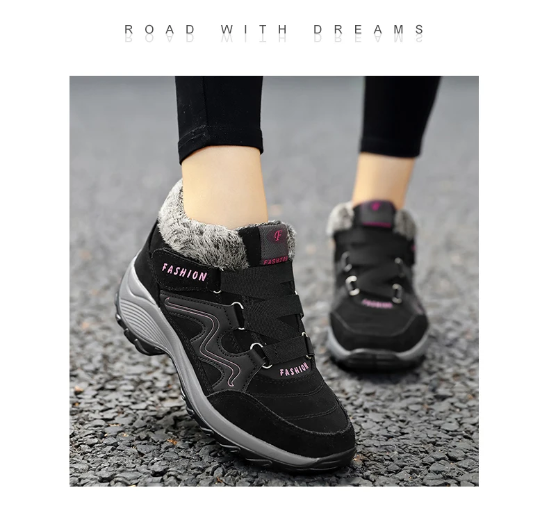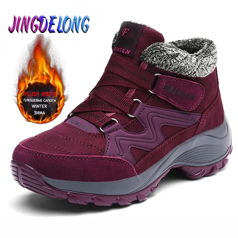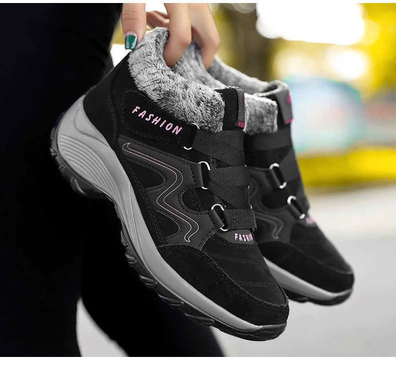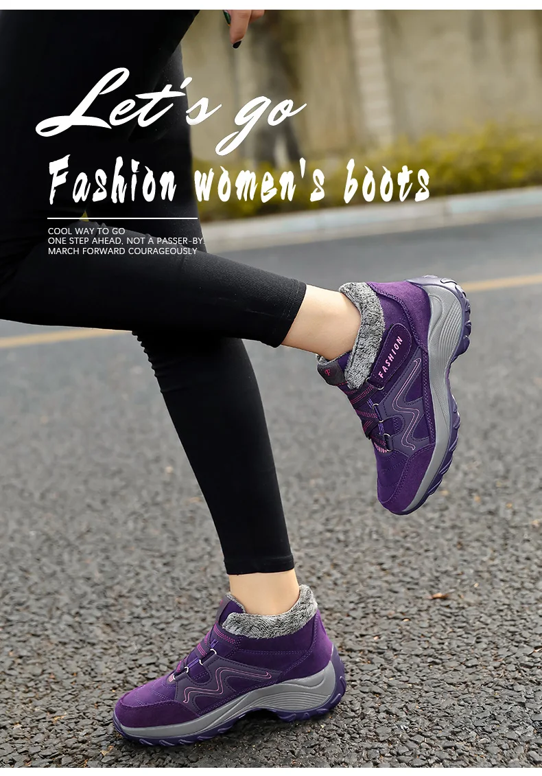 Женские ботинки на танкетке, зимние, водонепроницаемые, с плюшевой подкладкой