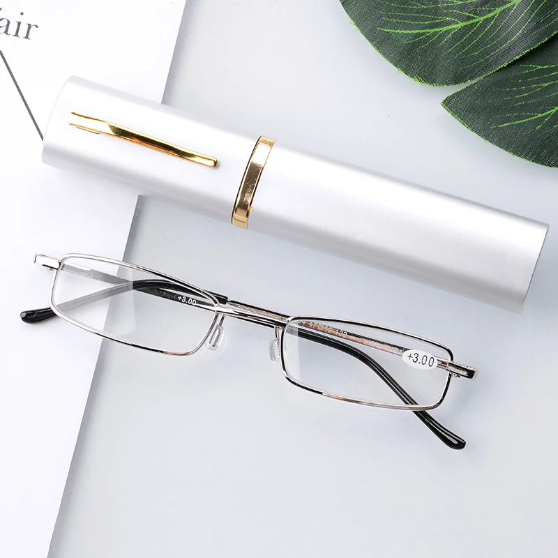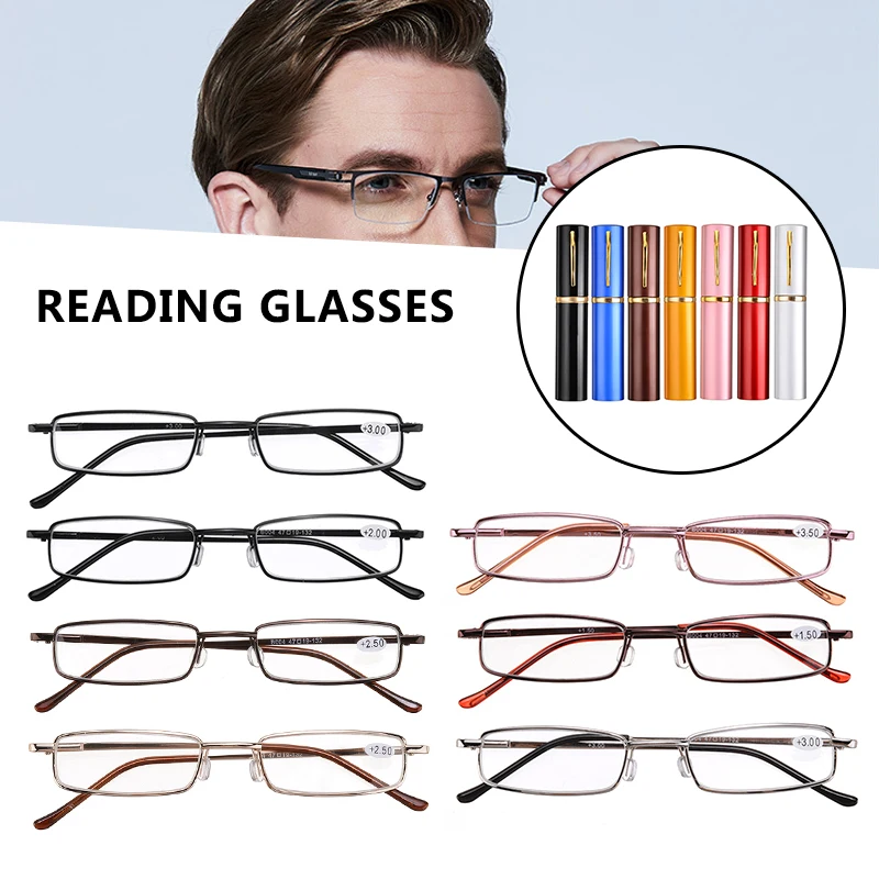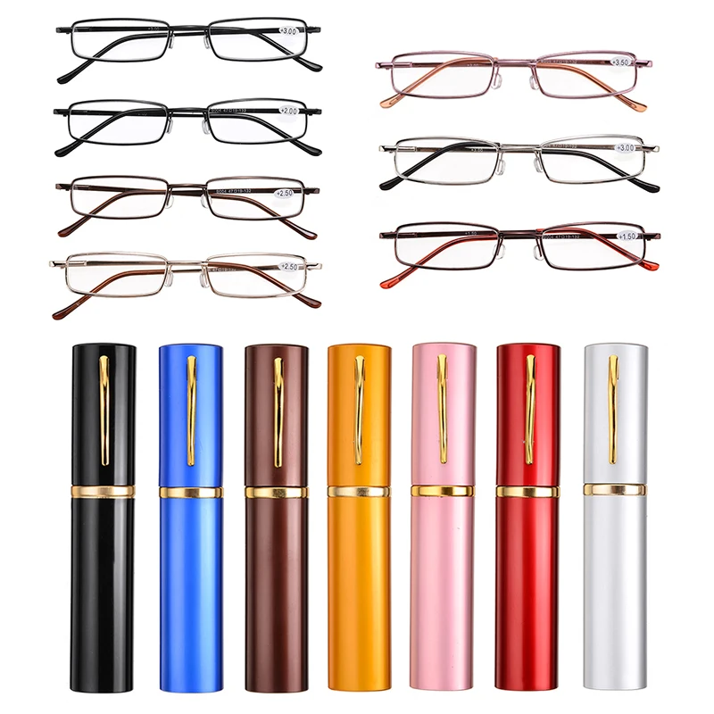 Mayitr 1 шт. металлические очки для чтения унисекс 8 цветов портативные очки прозрачный пружинный Шарнир + 1,0 + 4,0 с трубчатым чехлом