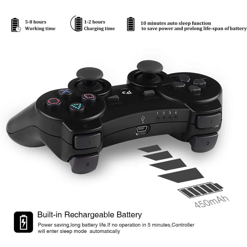 Для беспроводного контроллера Dualshock 3 для системы PlayStation 3 обеспечивает самый интуитивный игровой опыт с датчиками давления в каждой кнопке действия и включение высокочувствительной для технологии обнаружения движения SIXAXIS. Каждый удар, сбой и взрыв более реалистичны, когда пользователь чувствует грохот прямо на ладони. Он может даже обнаруживать естественные движения для интерактивной игры в реальном времени и высокой точности, действуя как естественное расширение тела пользователей. Для беспроводного контроллера Dualshock 3 используется технология Bluetooth для беспроводной игры и usb-кабель контроллера для бесперебойной и автоматической зарядки контроллера через систему play Station 3 в любое время.