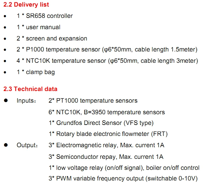 Рабочий счетчик часов, функция коллектора труб, функция термостата, контроль скорости насоса, измерение количества тепла, внешний теплообмен, система цепи бассейна, регулируемые параметры системы и дополнительные функции (с меню), баланс и диагностика.