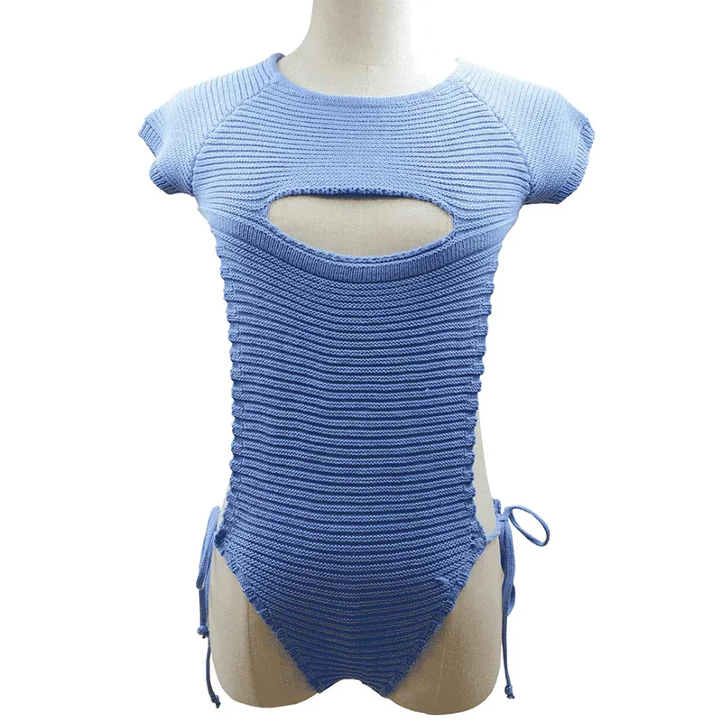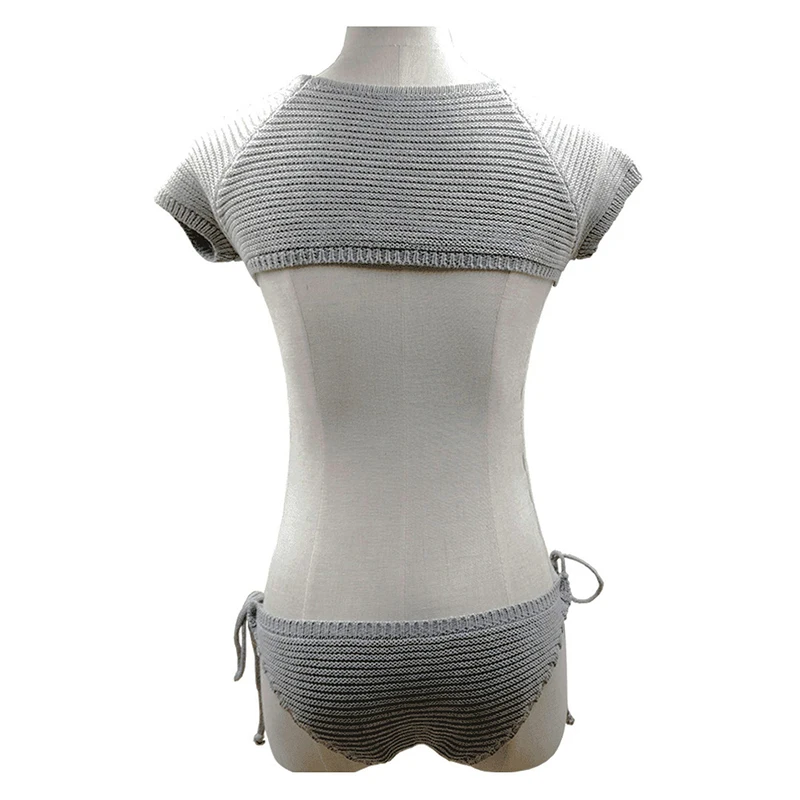 Женский вязаный купальник Coser, однотонный пляжный купальник, свитер, бикини, сексуальные купальники свободного размера