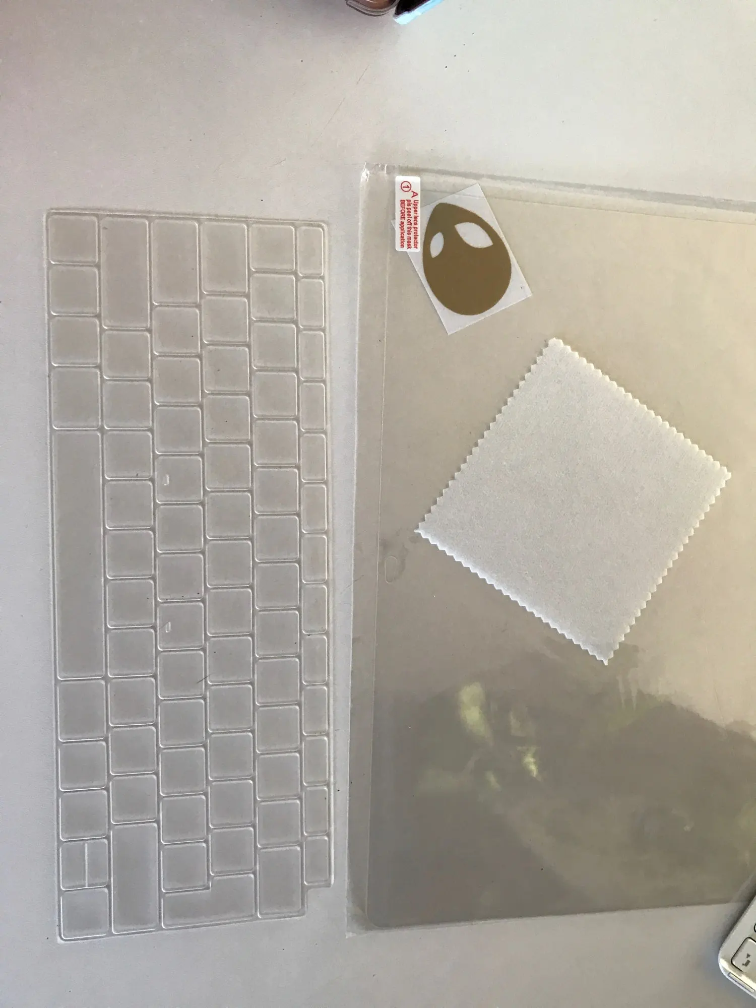 Очень красивый, безупречный размер. Предлагаем защитную пленку для экрана, защитную клавиатуру, ткань из микрофибры и наклейку. Спасибо за внимание