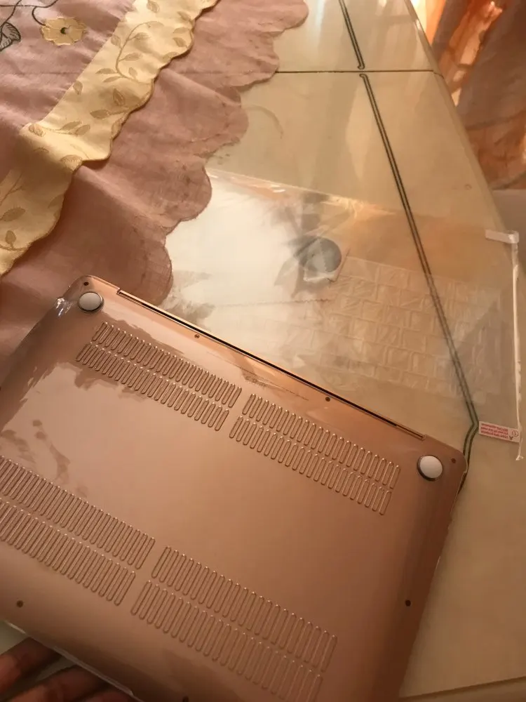 Доставка была быстрее, чем ожидалось, и упаковка была проложена и защищена. Дизайн выглядит точно так же, как на фото, в то время как нижняя часть ясна. Он также прибыл с защитным экраном и чехлом для клавиатуры, который я не ожидала, так что это был приятный сюрприз!