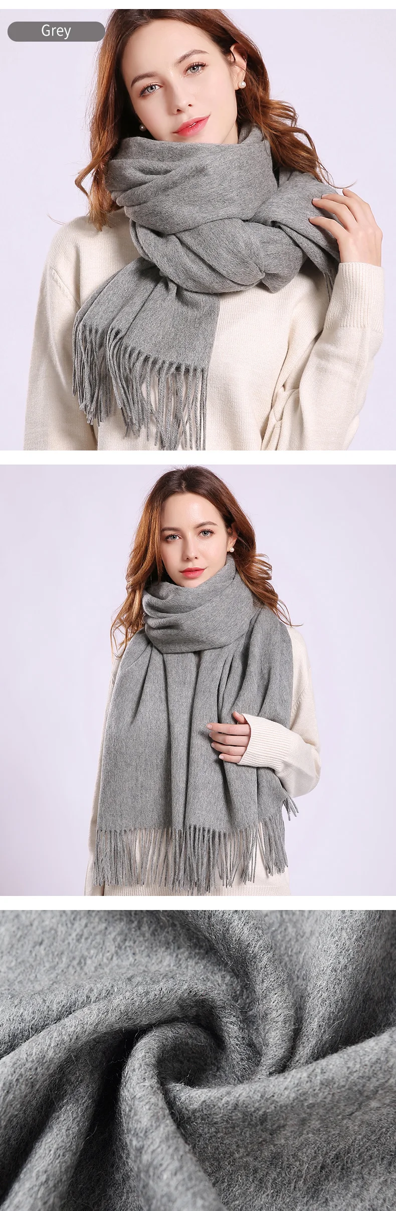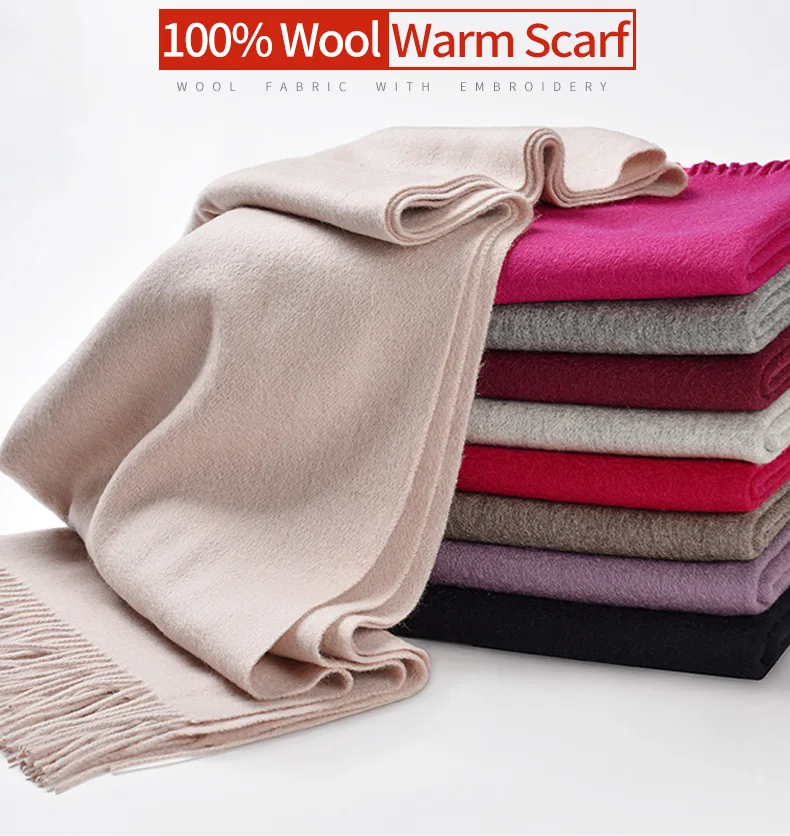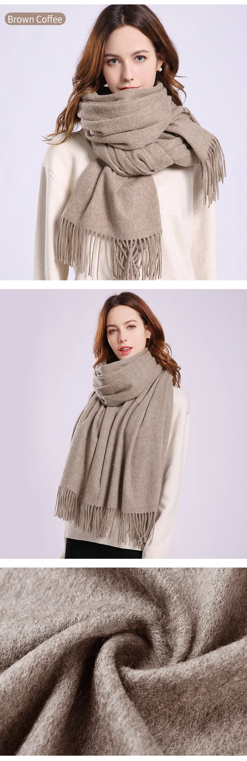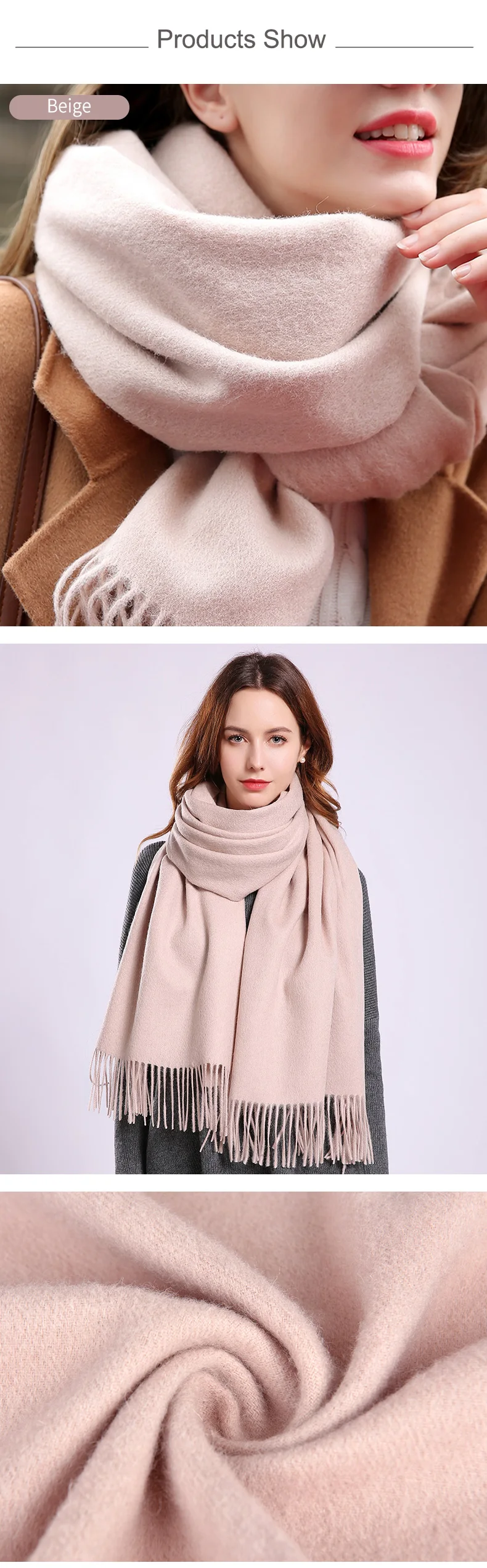 Шарф из 100% шерсти для женщин, толстый теплый длинный бежевый шерстяной шарф для женщин, зимние шали из чистой шерсти, шарфы, Женский кашемировый шарф