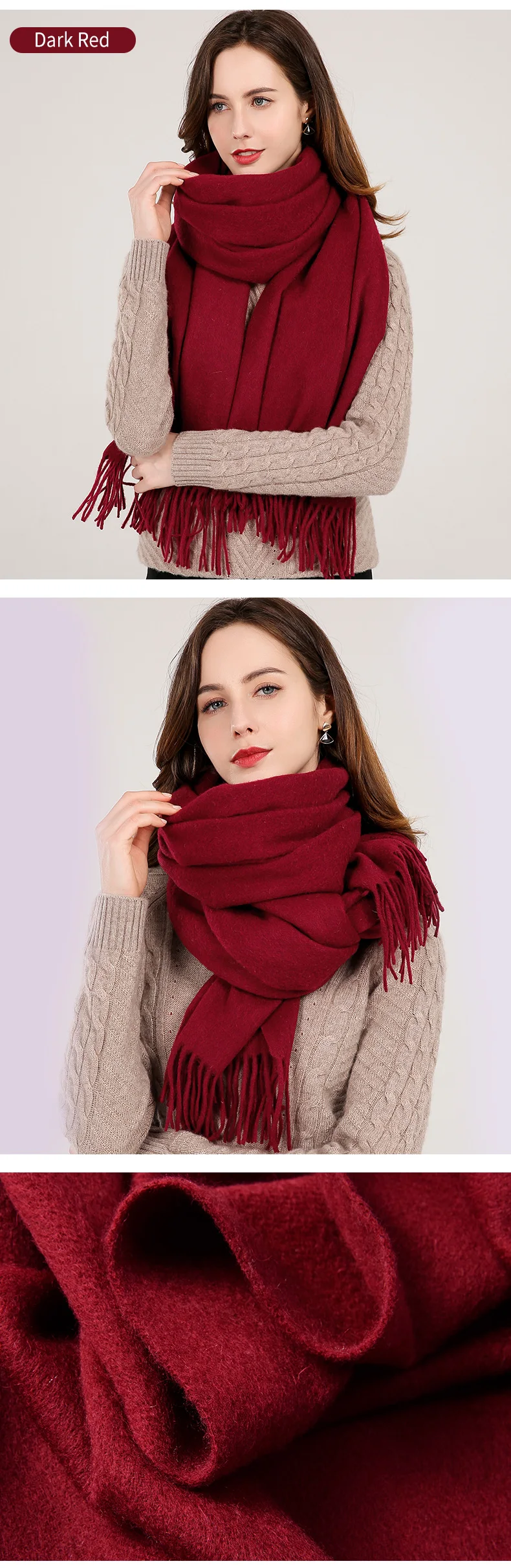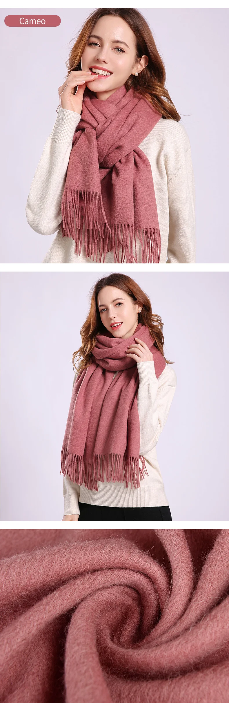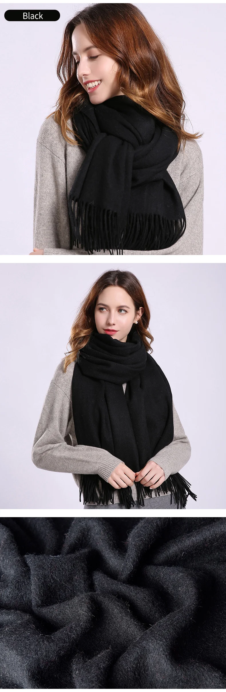 Шарф из 100% шерсти для женщин, толстый теплый длинный бежевый шерстяной шарф для женщин, зимние шали из чистой шерсти, шарфы, Женский кашемировый шарф