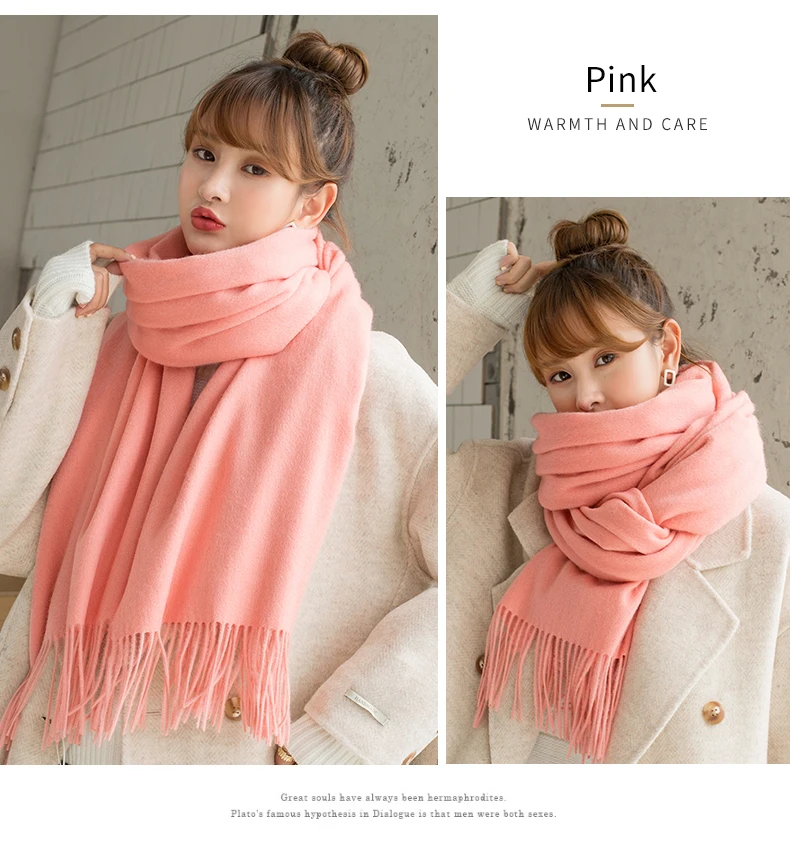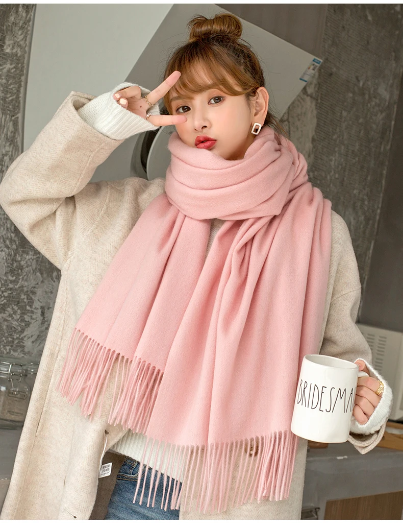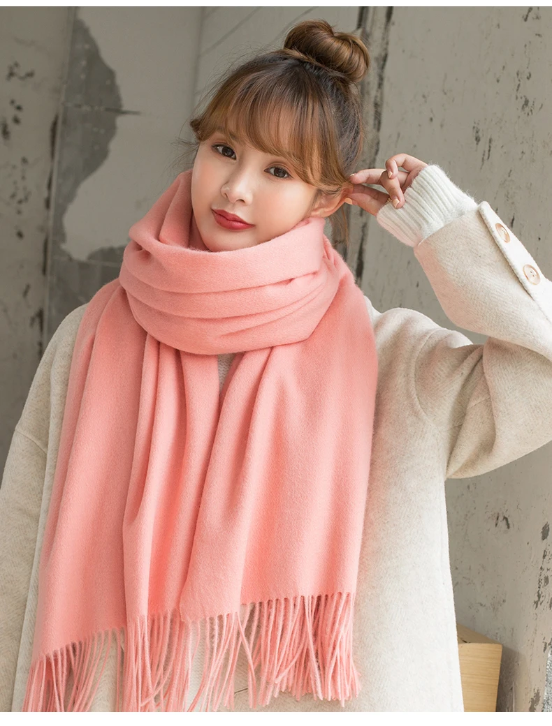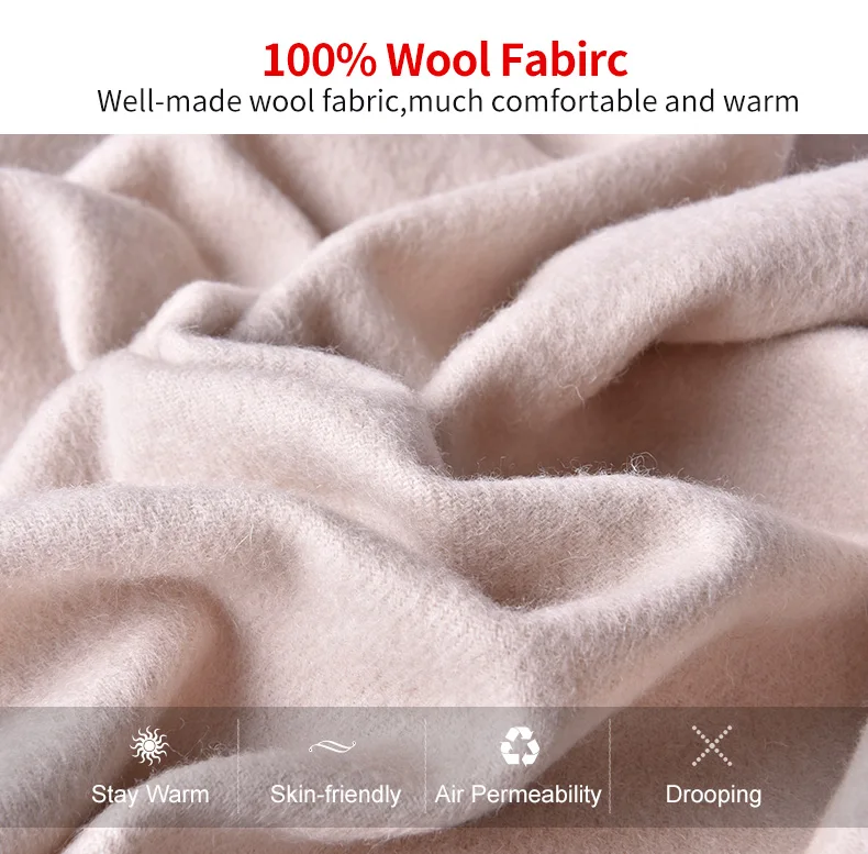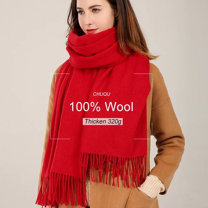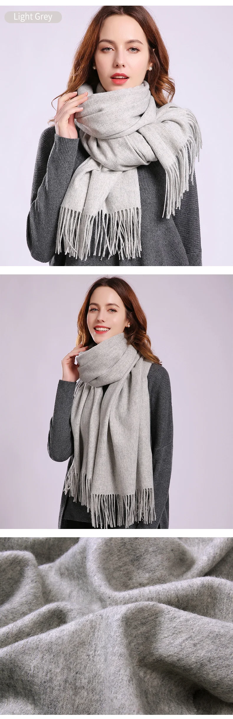 Шарф из 100% шерсти для женщин, толстый теплый длинный бежевый шерстяной шарф для женщин, зимние шали из чистой шерсти, шарфы, Женский кашемировый шарф
