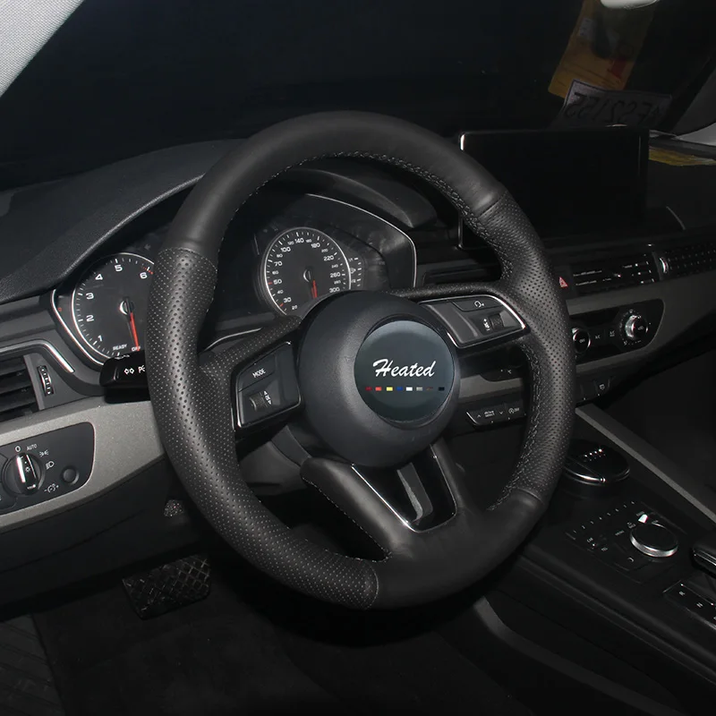 Чехол на руль с подогревом для Audi A4L, автомобильные аксессуары, дышащая кожаная оплетка из микрофибры на руль, Стайлинг автомобиля