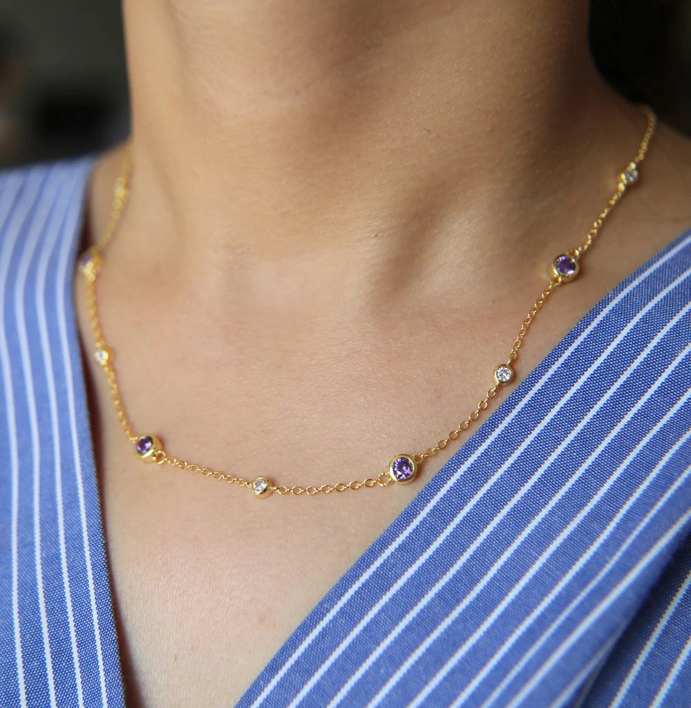 Женская цепочка из прозрачного фиолетового циркония, ожерелье из цепочки 41 + 5 см, зима 2017