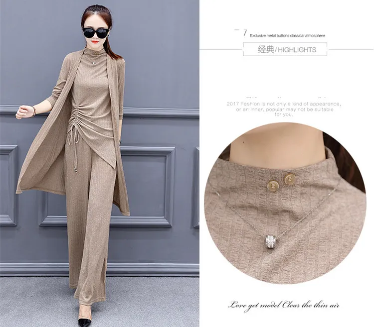 Осенней детской одежды из 3 предметов для женщин наряды элегантный вязаный костюм набор из органической кожи; Женская обувь размера плюс кардиган Топ без рукавов и брюки с широкими штанинами одежда 5XL