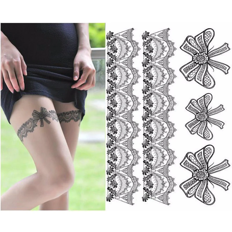 Водостойкая Временная тату-наклейка, сексуальные кружевные цветы, чулок, наклейки на татуировки, черная хна флэш, поддельные татуировки для девушек и женщин