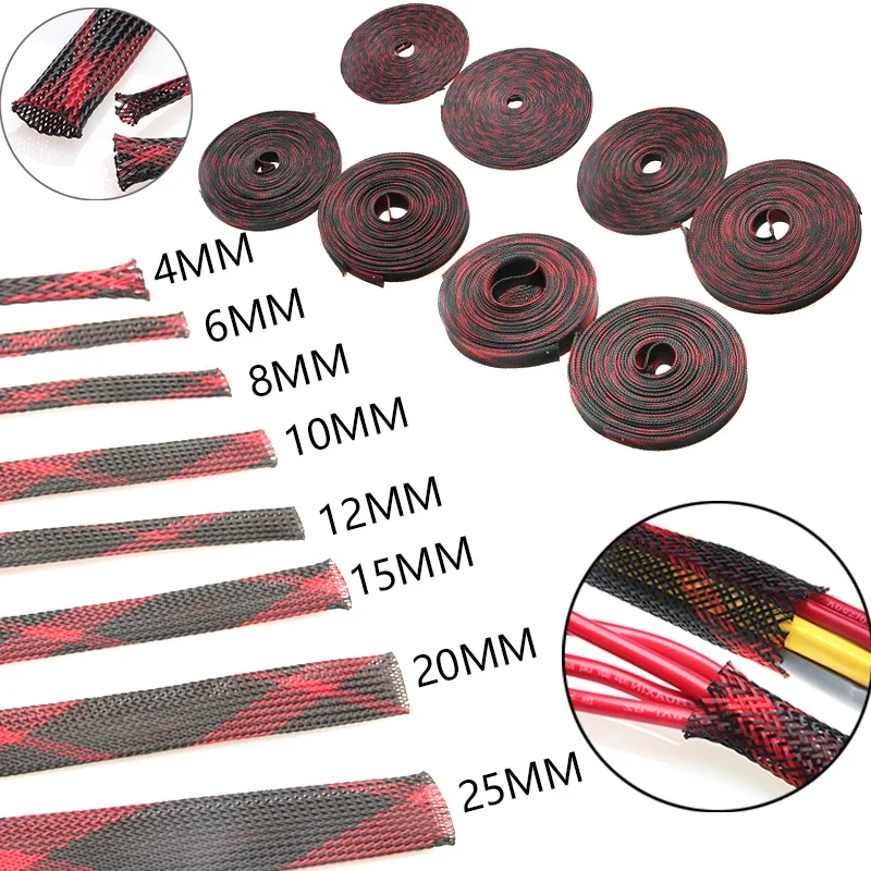 10 м высокой плотности изолированный красный и черный плетеный кабельный рукав 4681012152025 мм PET Расширяемый провод сальник кабели защиты