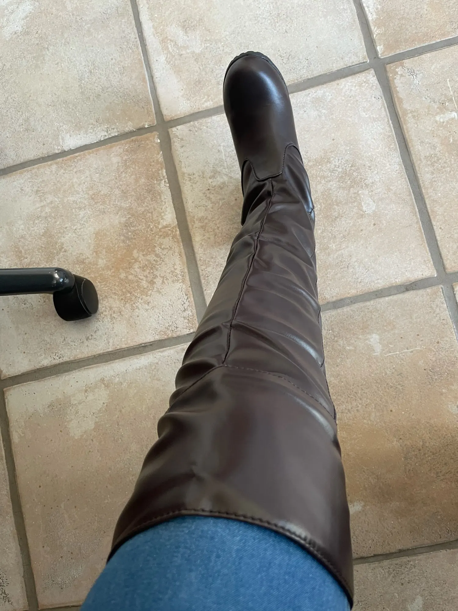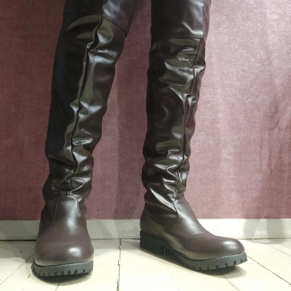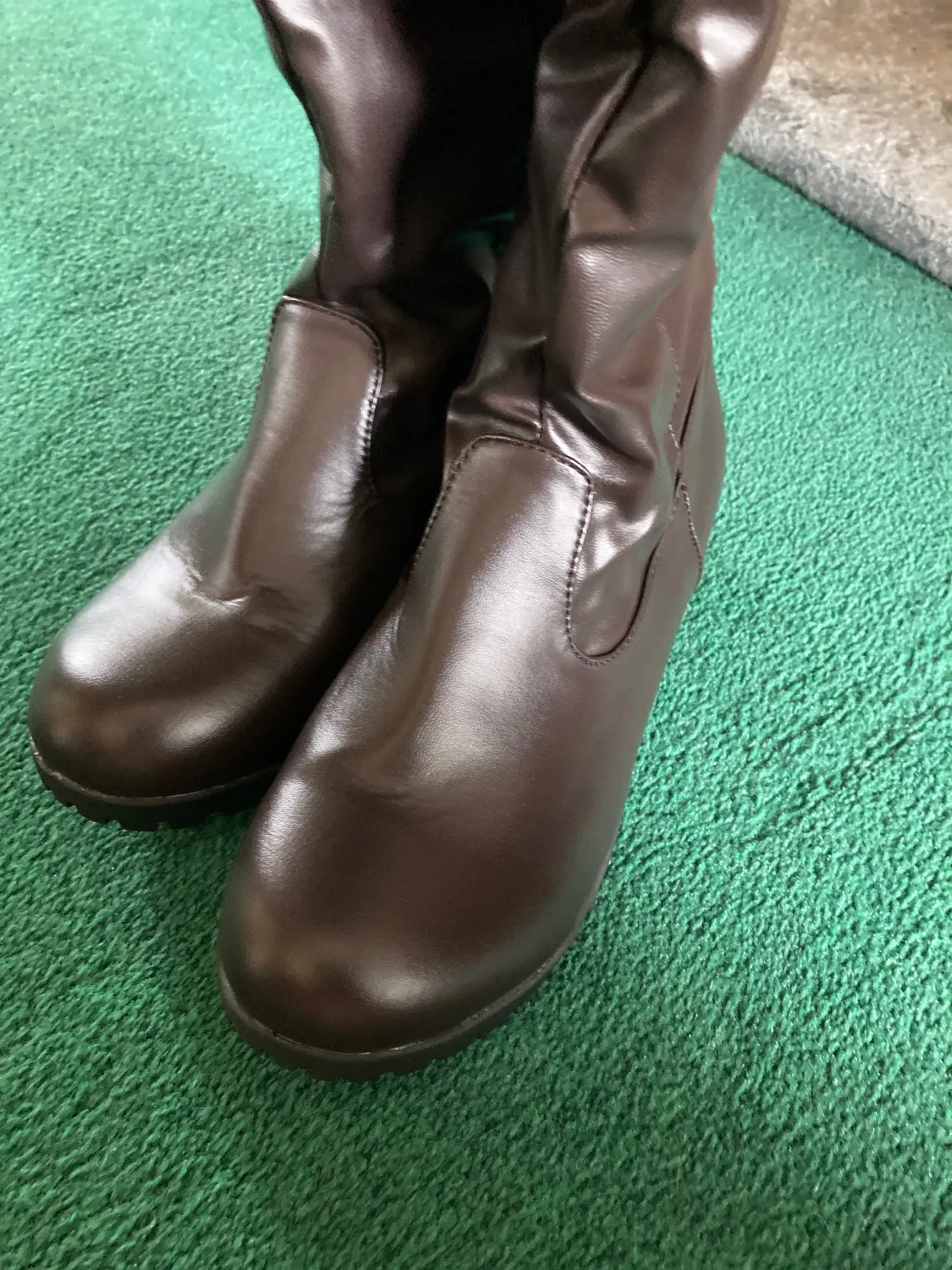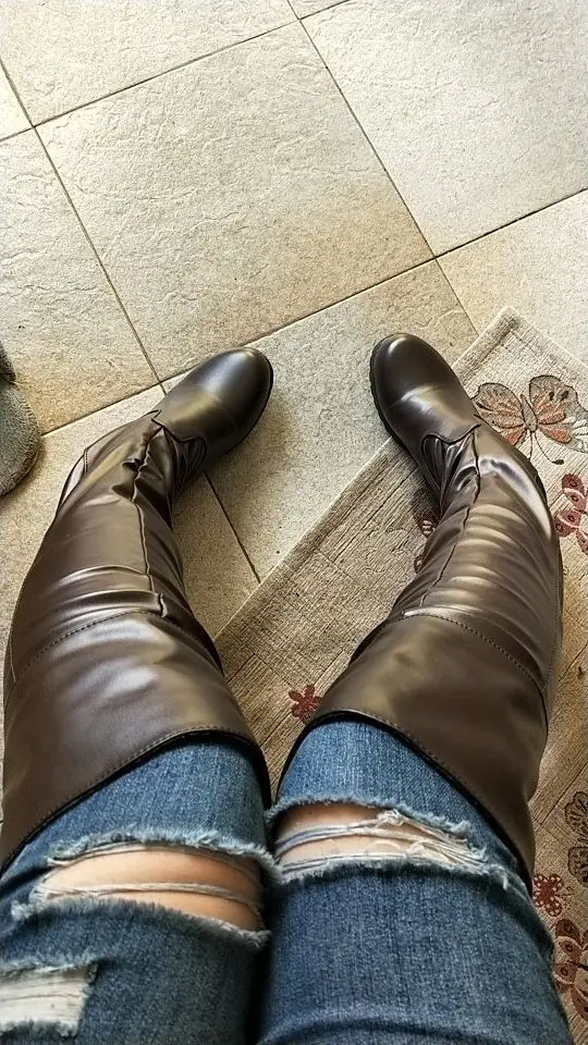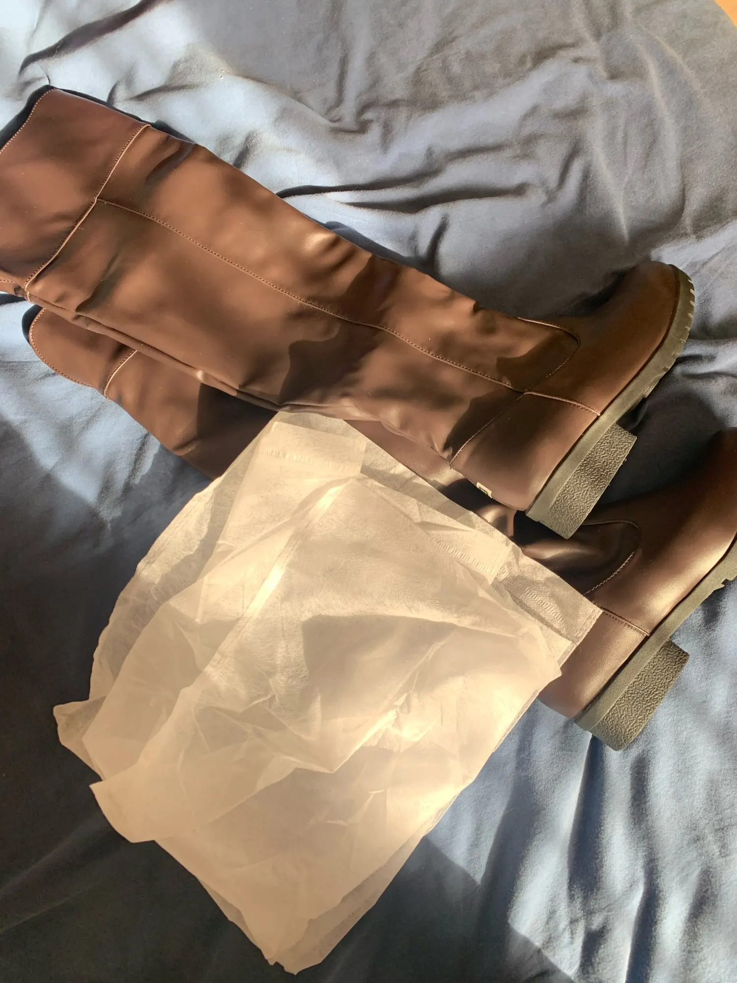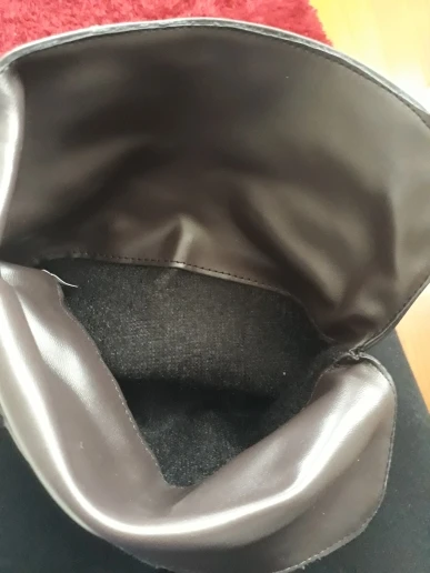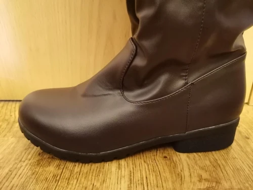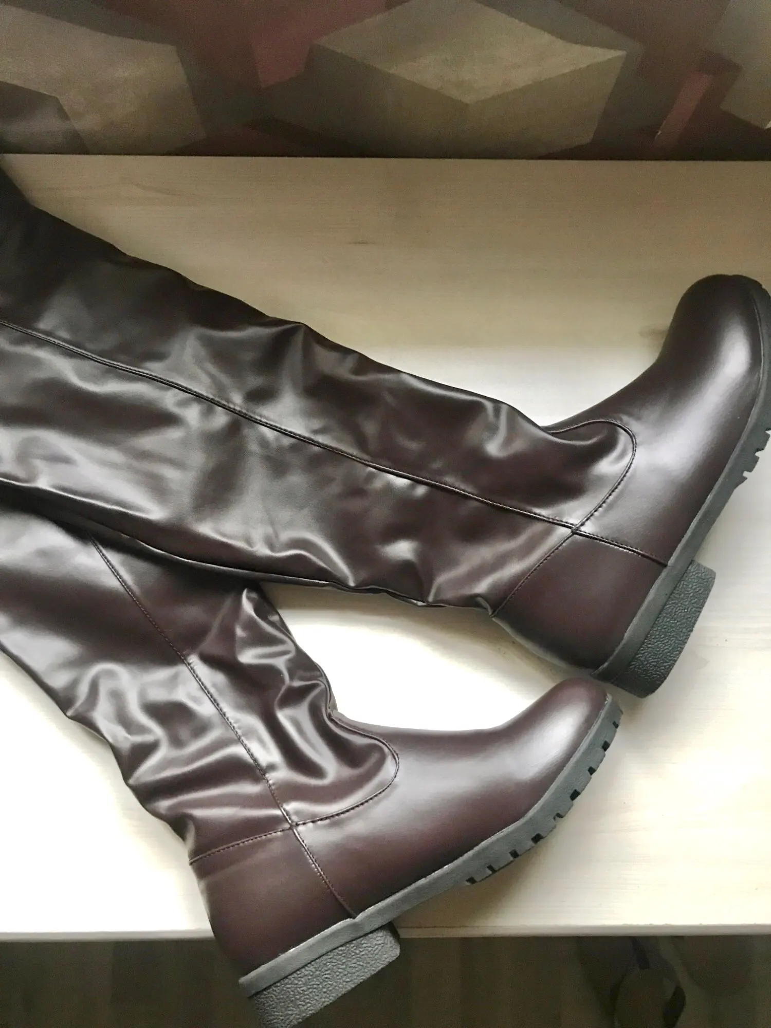 Сапожки шикарны! Для формы из атаки титанов, считаю, подойдут идеально. Посылка пришла чётко в указанный срок. Когда открыла пакет, был сильный запах клея, но он выветрится, так что не волнуйтесь. А так пахнут обычным кожзамом. Чтобы разровнять складки, думаю, можно погладить их на небольшой температуре утюгом через ткань. Подошва средненького качества. Немного видны следы клея на стыке подошвы, но этого почти незаметно. Швы ровные, аккуратные. Сапоги не тёплые, можно носить весной, ну, на осень может тоже пойдут, но не на позднюю. Насчёт размера, я ношу русский 38, но иногда бывает беру 39, так что решила подстраховаться и взяла 40. Подошли идеально, впритык. Так что берите на пару размеров больше, чем ваша обычная обувь. Никаких замочков и прорезей нет, но сапоги и так легко надеваются. С моим ростом 159 полностью закрывают колено. Снимаются тоже несложно. Продавец положил в подарок открытку и резиночку, очень мило :з В общем, сапоги хорошие, я довольна. Спасибо большое продавцу ❤️