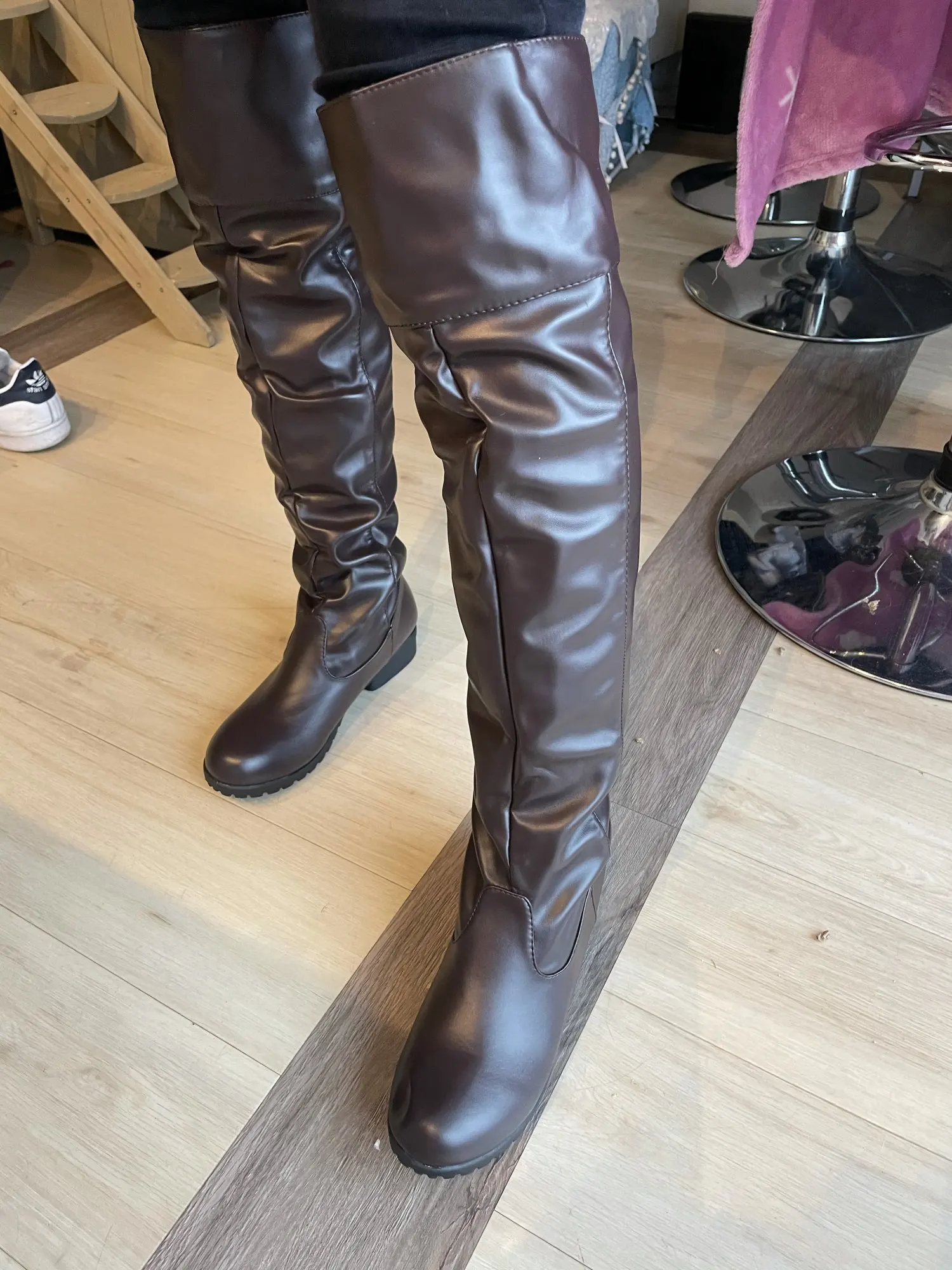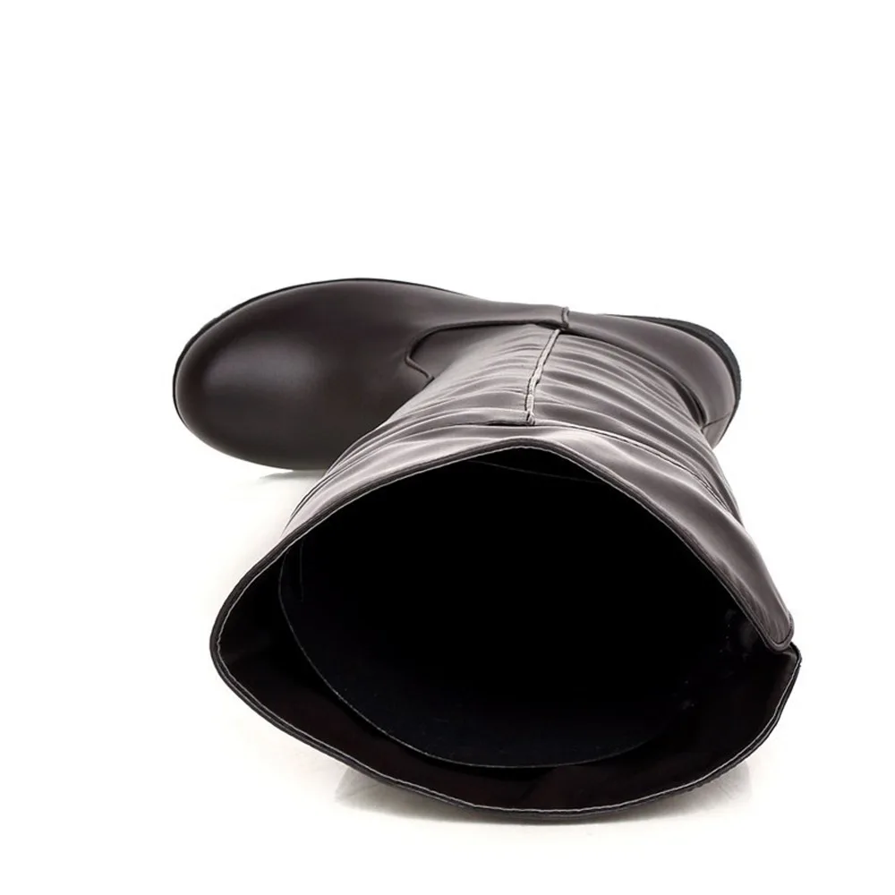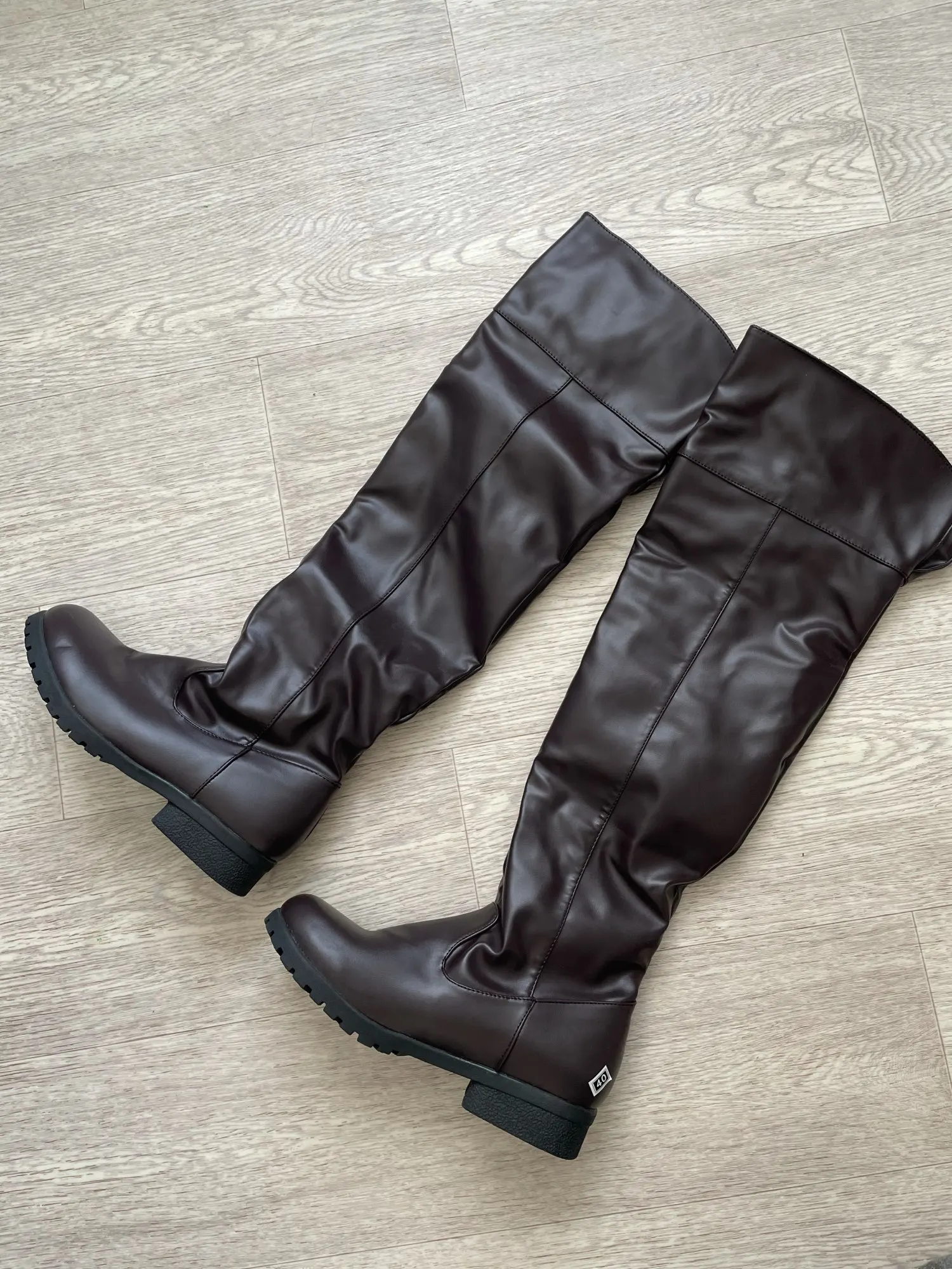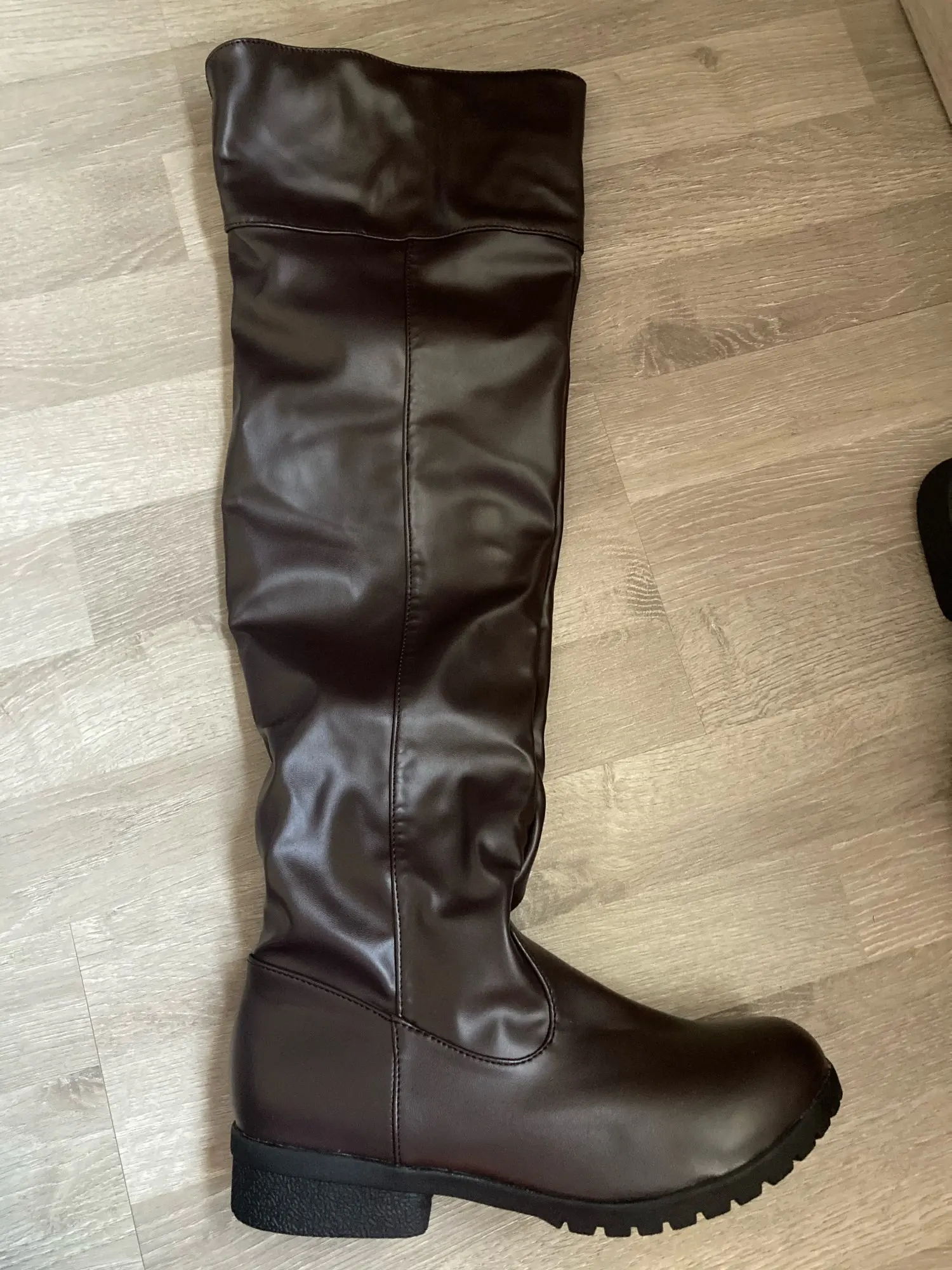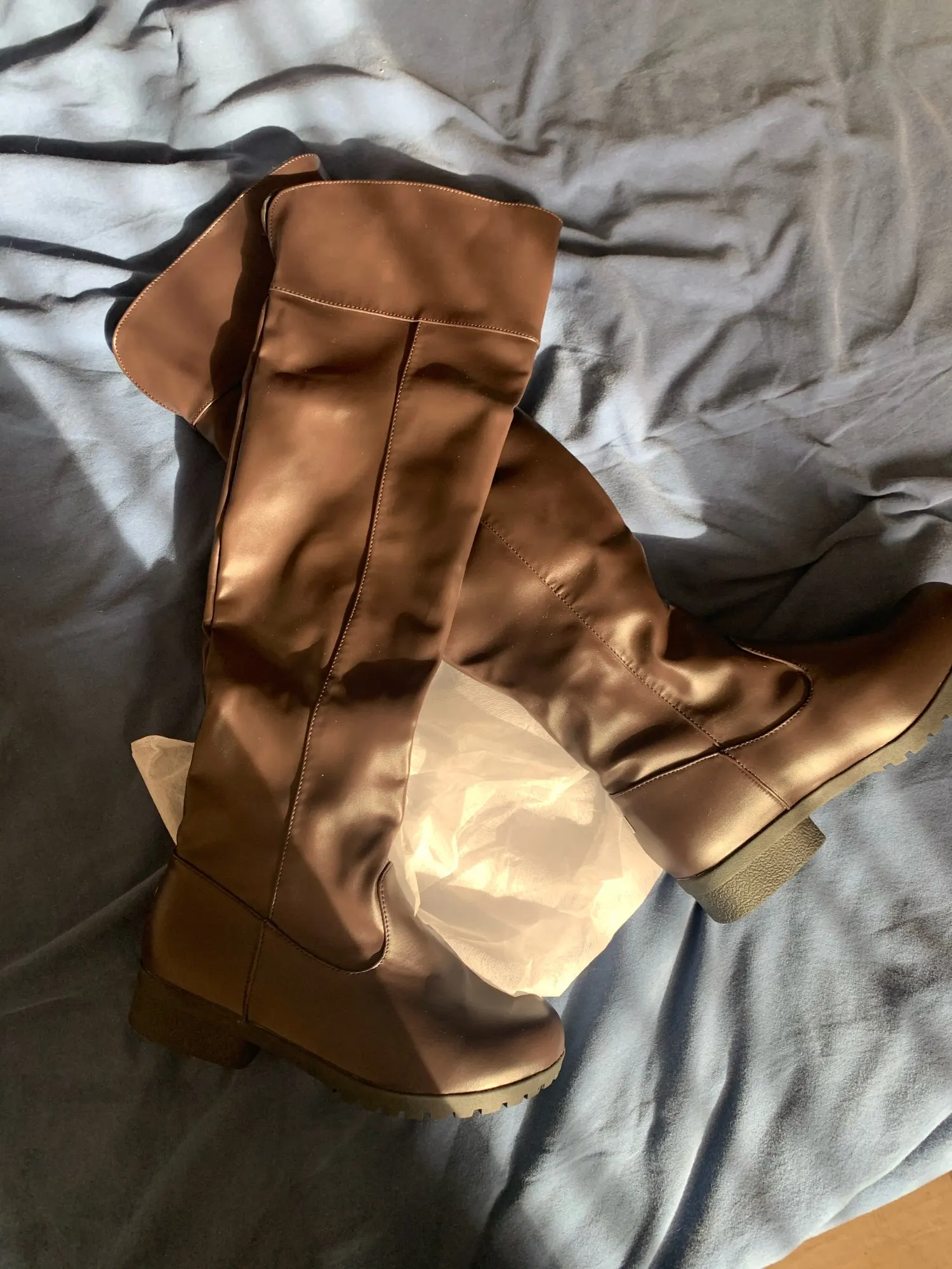Сапожки шикарны! Для формы из атаки титанов, считаю, подойдут идеально. Посылка пришла чётко в указанный срок. Когда открыла пакет, был сильный запах клея, но он выветрится, так что не волнуйтесь. А так пахнут обычным кожзамом. Чтобы разровнять складки, думаю, можно погладить их на небольшой температуре утюгом через ткань. Подошва средненького качества. Немного видны следы клея на стыке подошвы, но этого почти незаметно. Швы ровные, аккуратные. Сапоги не тёплые, можно носить весной, ну, на осень может тоже пойдут, но не на позднюю. Насчёт размера, я ношу русский 38, но иногда бывает беру 39, так что решила подстраховаться и взяла 40. Подошли идеально, впритык. Так что берите на пару размеров больше, чем ваша обычная обувь. Никаких замочков и прорезей нет, но сапоги и так легко надеваются. С моим ростом 159 полностью закрывают колено. Снимаются тоже несложно. Продавец положил в подарок открытку и резиночку, очень мило :з В общем, сапоги хорошие, я довольна. Спасибо большое продавцу ❤️