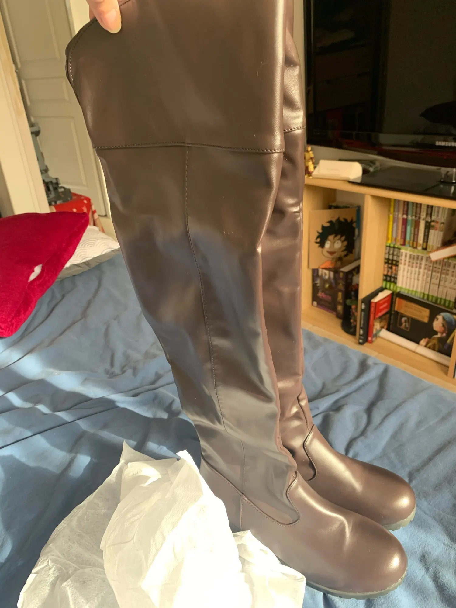 Я любил сапоги! Я попросил больший размер, и они подходят мне идеально. Качество очень хорошее, и их очень легко надеть. Мне очень понравился материал, но я думаю, что если вы не позаботитесь об этом, он может быть очищен. Они очень удобны и выглядят так, как будто их можно использовать на улице. Они идеально подходят для моего косплея! Они также пришли с небольшим подарком.