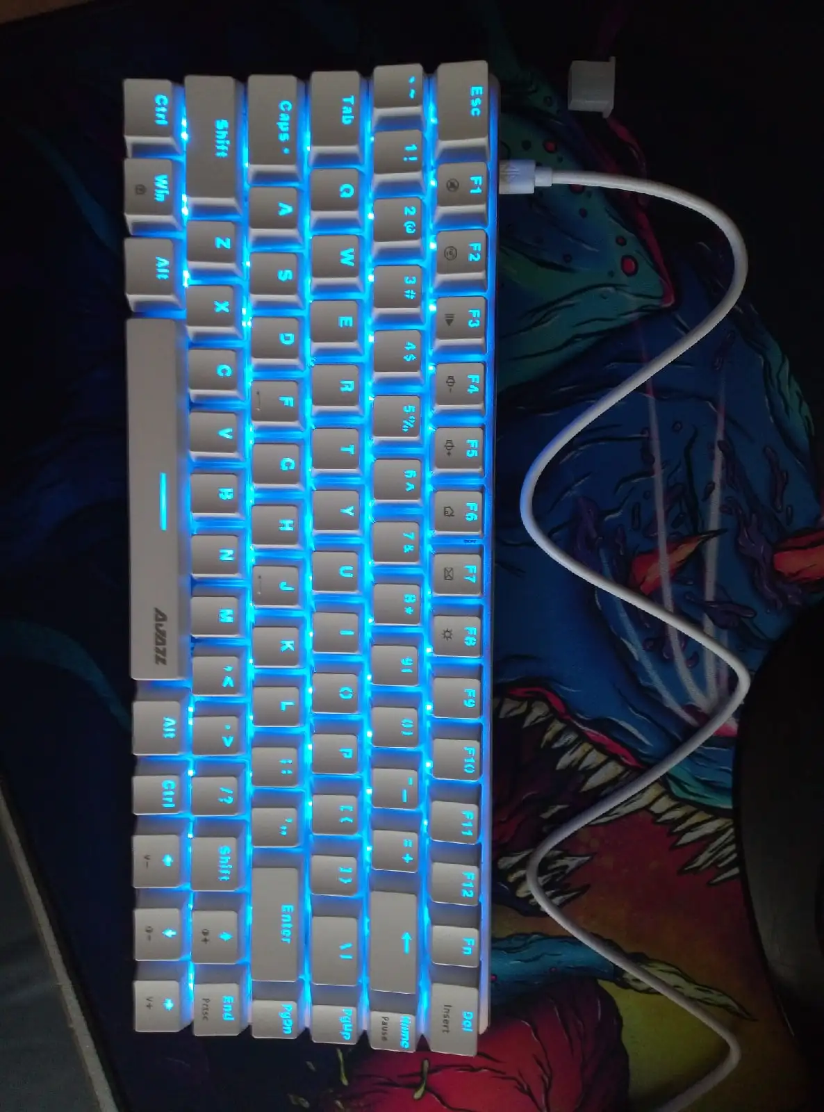 Приятно удивило то, что я думал там мини юсб в качестве разъёма для подключения, то на деле оказался современный тайп-си. Заказывал белую с синей подсветкой и коричневыми свитчами, они тише, я так и хотел, он натяжение большое и пальцы устают со временем.