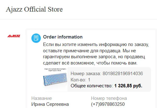 Заказал клавиатуру пришла за 2 дня большое спасибо