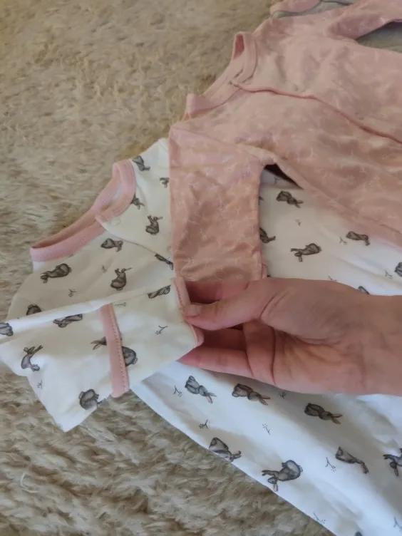 Очень красивый комплект, приятный, написано 100% хлопок. Взяла на 3 месяца, размер соответствует (до 56 см точно). Швы ровные, кнопки рабочие. И нереально быстрая доставка (8 дней в Украину) при учёте коронавируса. Огромное спасибо!