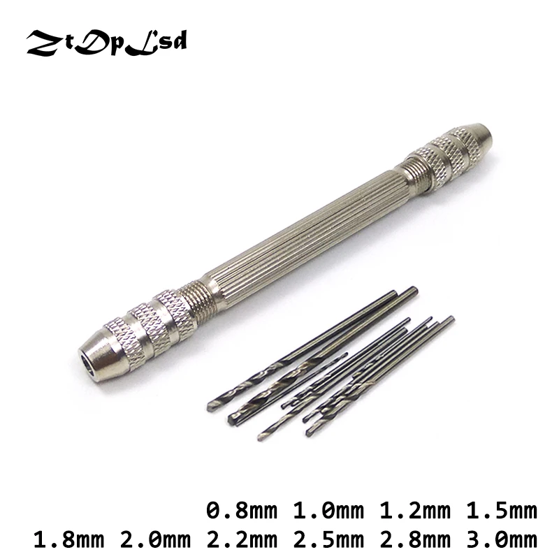 ZtDpLsd 1 шт. Мини Микро алюминиевая ручная дрель с бесключевым патроном + 10 шт. спиральных Сверл из быстрорежущей стали деревообрабатывающий сверлильный вращающийся инструмент