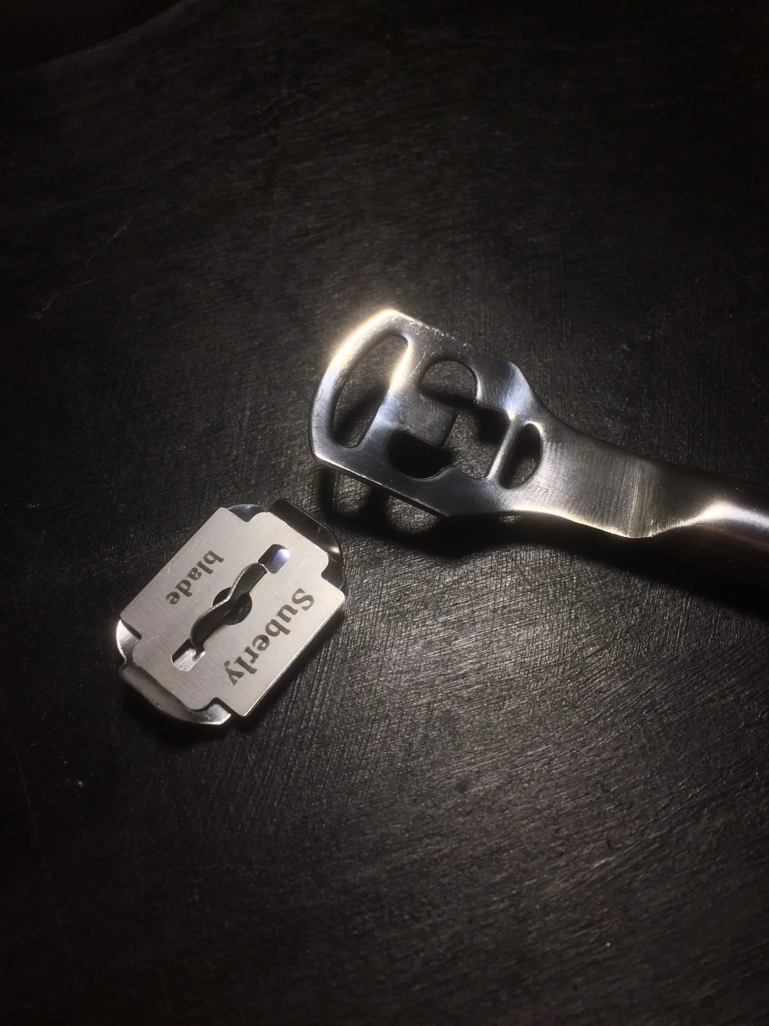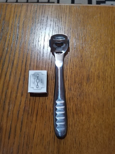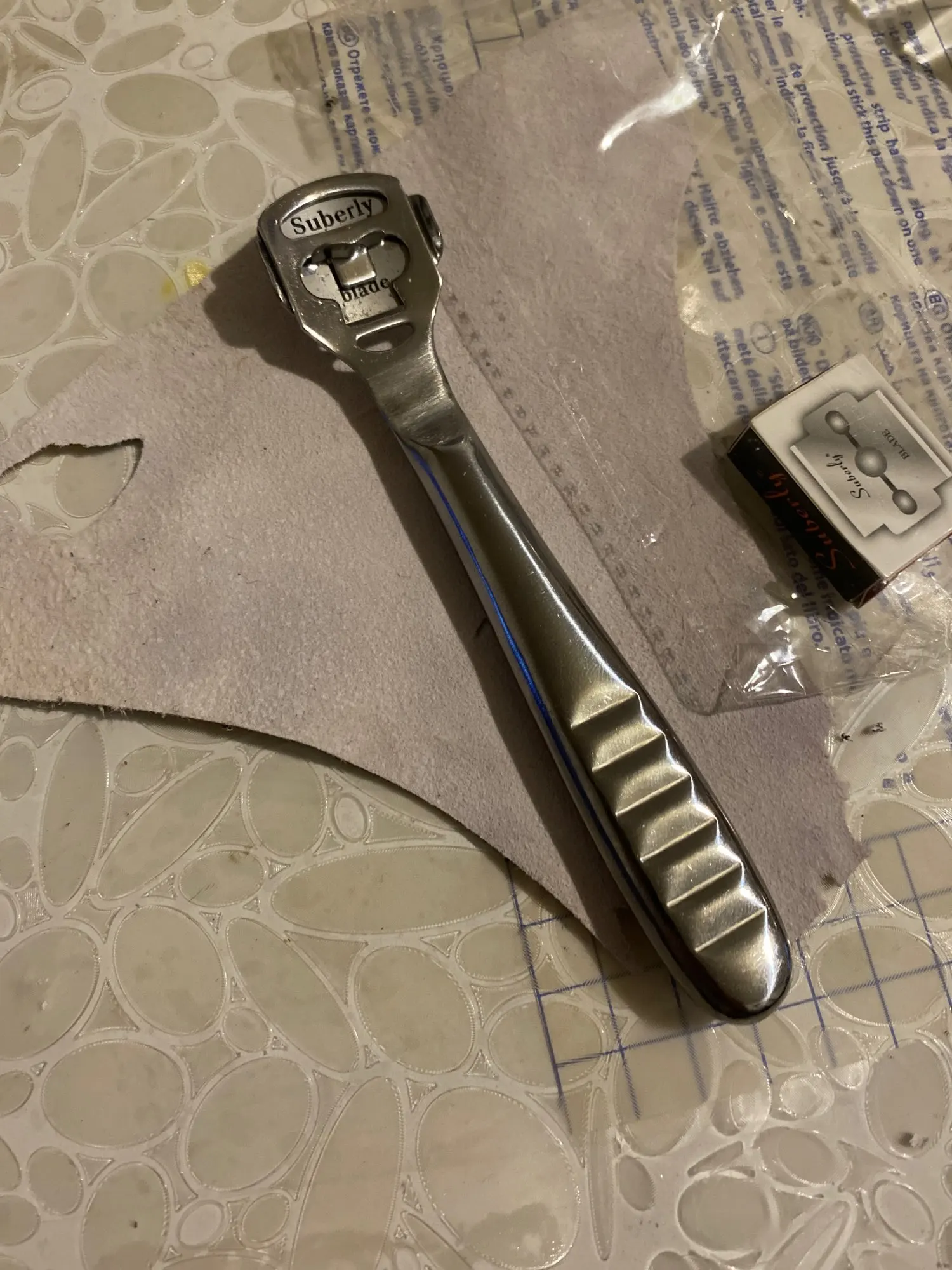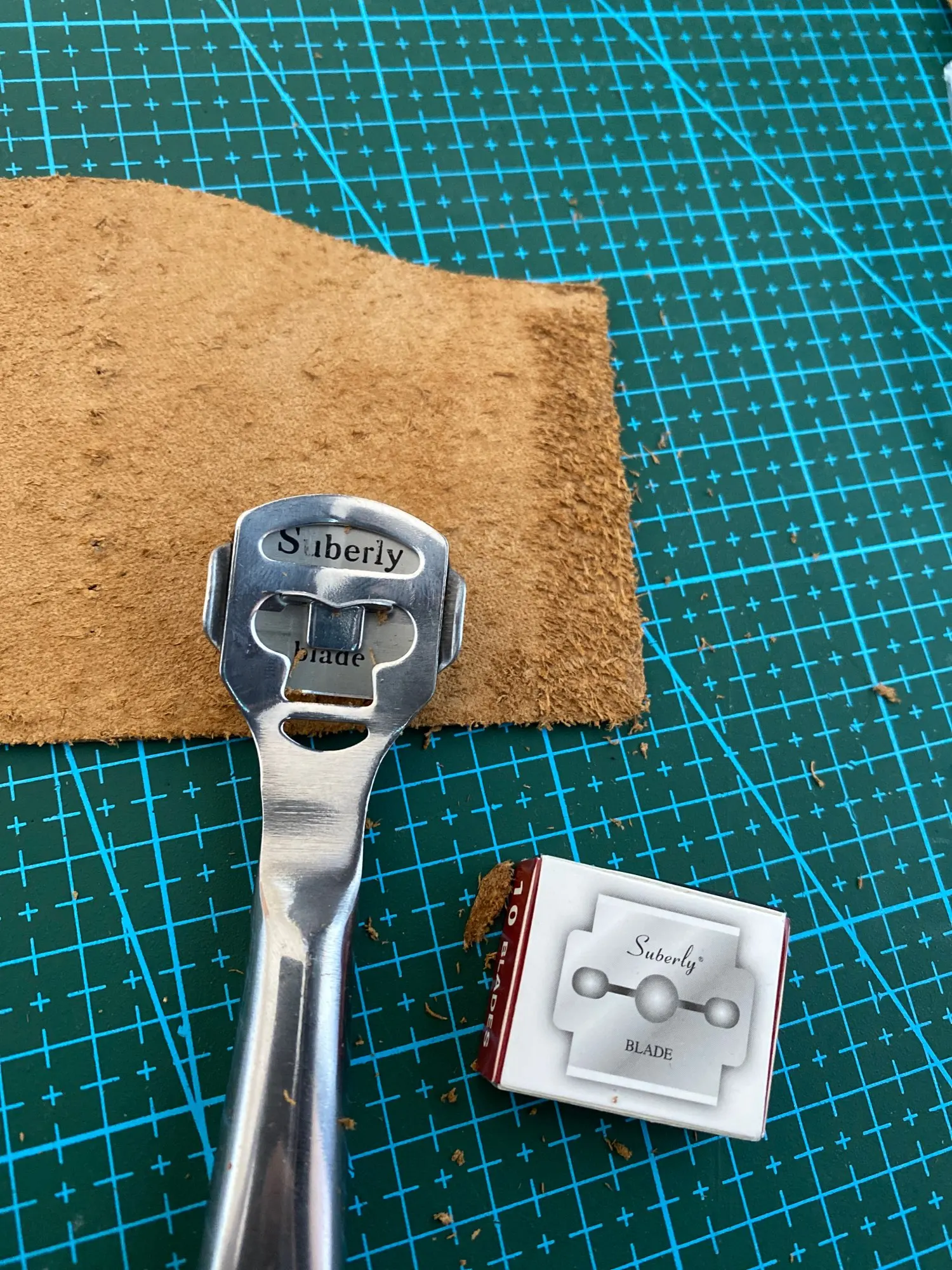 Надо приноровиться, но потом кожу в принципе строгает. Ручку загнул для удобства работы.