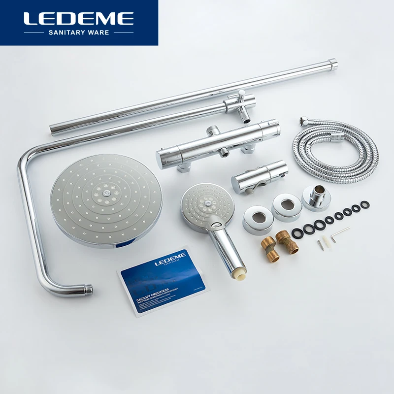 LEDEME Штанга со термостатическим смесителем и тропическим душом латунь Цвет: хром L2411